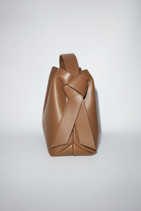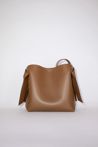 Midi shoulder bag is adorned with twisted musubi knots on each side, inspired by traditional Japanese obi sashes. Crafted from soft leather, detailed with an embossed Acne Studios logo. Completed with a middle zippered pocket compartment and a discrete magnetic closure. - Soft leather - Side knot detail - Shoulder strap - Interior zipper compartment pocket with branded lanyard - Gold-tone finishes - Debossed Acne Studios logo - Measurements: 35 cm; 35 cm; 16 cm - Strap measurement: 115 cm full length - Protectve dustbag included - Made in Italy - Style ID: Musubi Midi SS22 - 100% Leather; Lining: 100% Leather