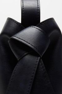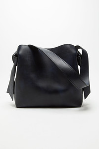 Mini shoulder bag featuring twisted Musubi knots on each side, inspired by traditional Japanese obi sashes. Crafted from soft, semi-shiny leather treated for an aged look, and finished with a antique silver foil embossed Acne Studios logo. Includes an interior zip pocket with branded zip puller, and a detachable, adjustable shoulder strap. - Shoulder bag - Musubi knot - Embossed logo - Top handle - Detachable shoulder strap - Interior compartment - Snap button closure - Protective dustbag included - Measurements: 35 cm; 35 cm; 16 cm - Strap length: 130 cm, 6 holes - Handle width: 5 cm - Style ID: FN-WN-BAGS000505 - Made in Italy - Shell made from leather from a Leather Working Group (LWG) certified tannery with Silver rating - Shell: 100% Calf leather, Lining: 100% Lamb leather