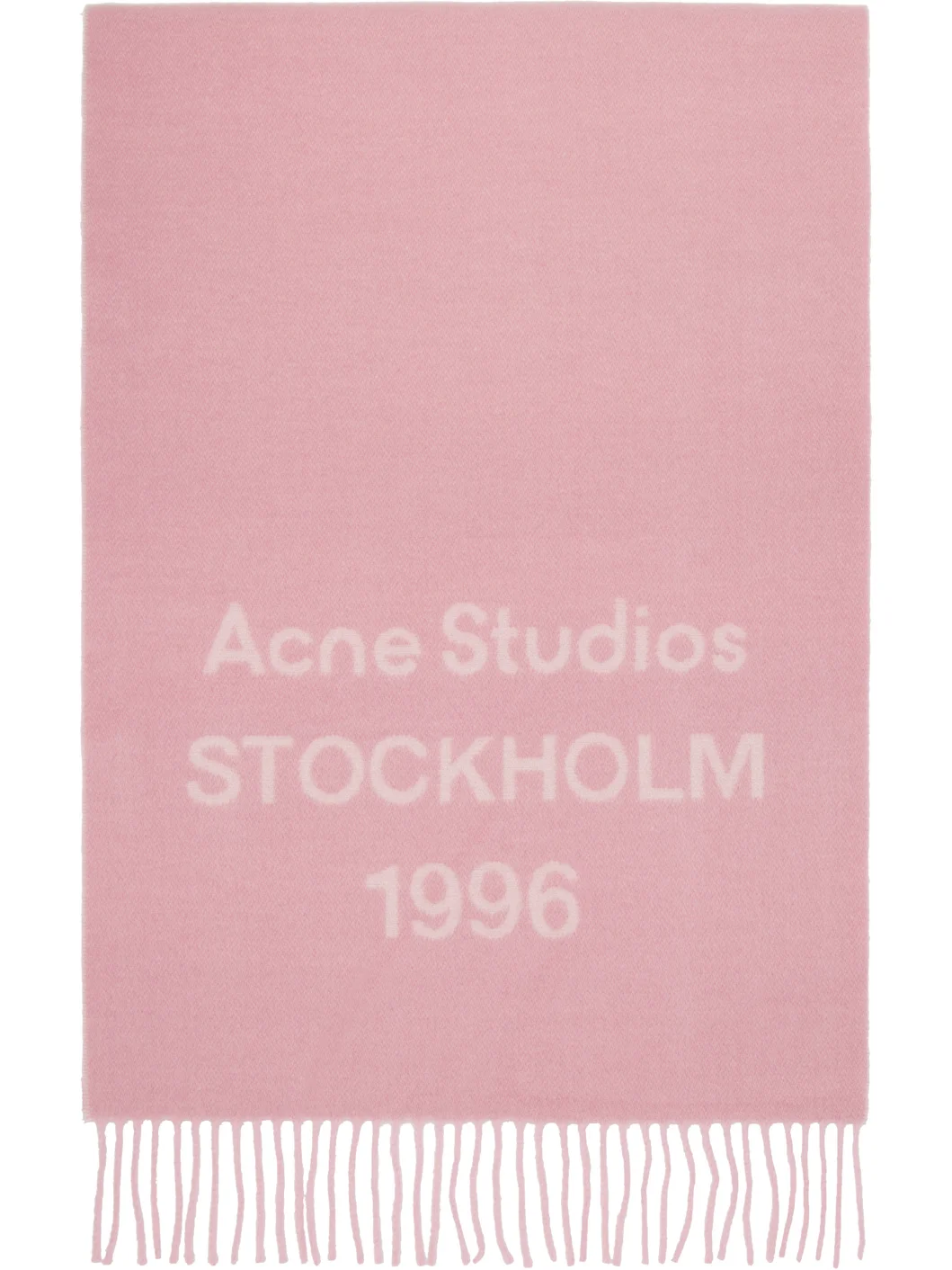 Wool flannel scarf. · RWS-certified wool · Fringed ends · Jacquard logo at end · L78" x W17" Supplier color: Cottoncandy pink 100% wool. Made in Italy 261129M150018