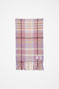 Fringe scarf features an all-over plaid pattern, detailed with an Acne Studios couture label crafted from a wool blend. - Fringe ends - Acne Studios couture label - Measurements: 35 cm; 250 cm - Style ID: FN-UX-SCAR000343 - Shell: 43% Wool, 28% Nylon, 24% Silk, 3% Cotton, 1% Other fibres, 1% Polyester