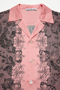 Long sleeve button-up shirt is cut to a relaxed fit and below hip length. Detailed with an all-over seasonal print, crafted from a fluid satin fabric. - Relaxed fit - Below hip - Print - Button-up closure - Model is 186 cm / 6′2 and wears a size 46 - Style ID: FN-MN-SHIR000771 - Shell: 100% Viscose