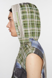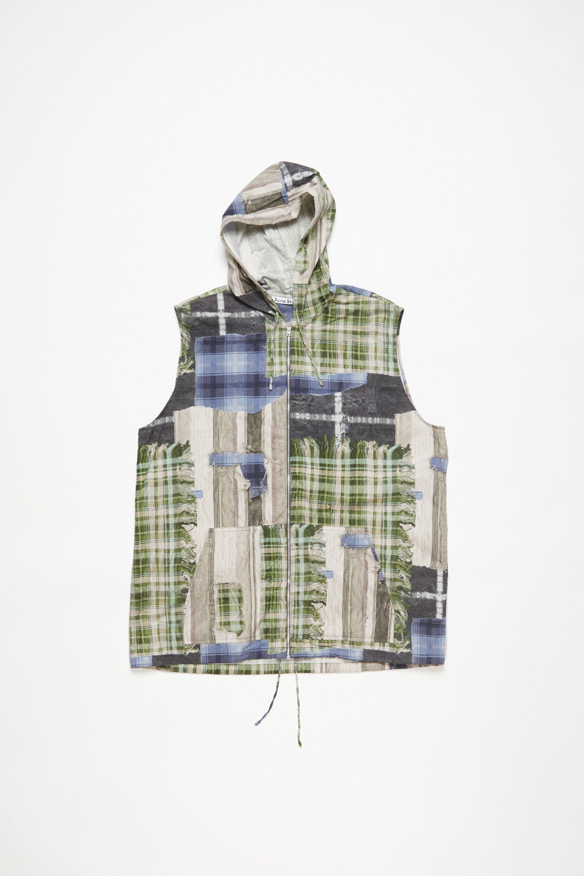 Sleeveless hooded jacket is cut to a regular fit and below hip length with drawcords at the hood and bottom hem. - Regular fit - Below hip length - Hooded - Sleeveless - Print washed finish - Light crinkle - Zipper closure - Drawcord hood and hem - Acne Studios logo embroidery on the hood - Model is 186 cm / 6′2 and wears a size 46 - Style ID: FN-MN-SHIR000761 - Shell: 100% Cotton