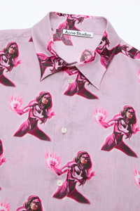 Long sleeve button-up shirt features a trademark printed animation and logo embroidery at the centre back. Crafted from a lightweight linen. Cut to a relaxed fit and below hip length. - Relaxed fit - Below hip length - © &™ DC (s25) - Acne Studios logo embroidery - Centre front button-up closure - Model is 188.5 cm/ 6'2 and wears a size 46 - Style ID: FN-MN-SHIR000863 - Shell: 100% Linen