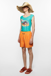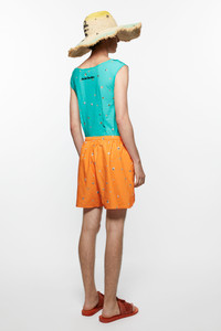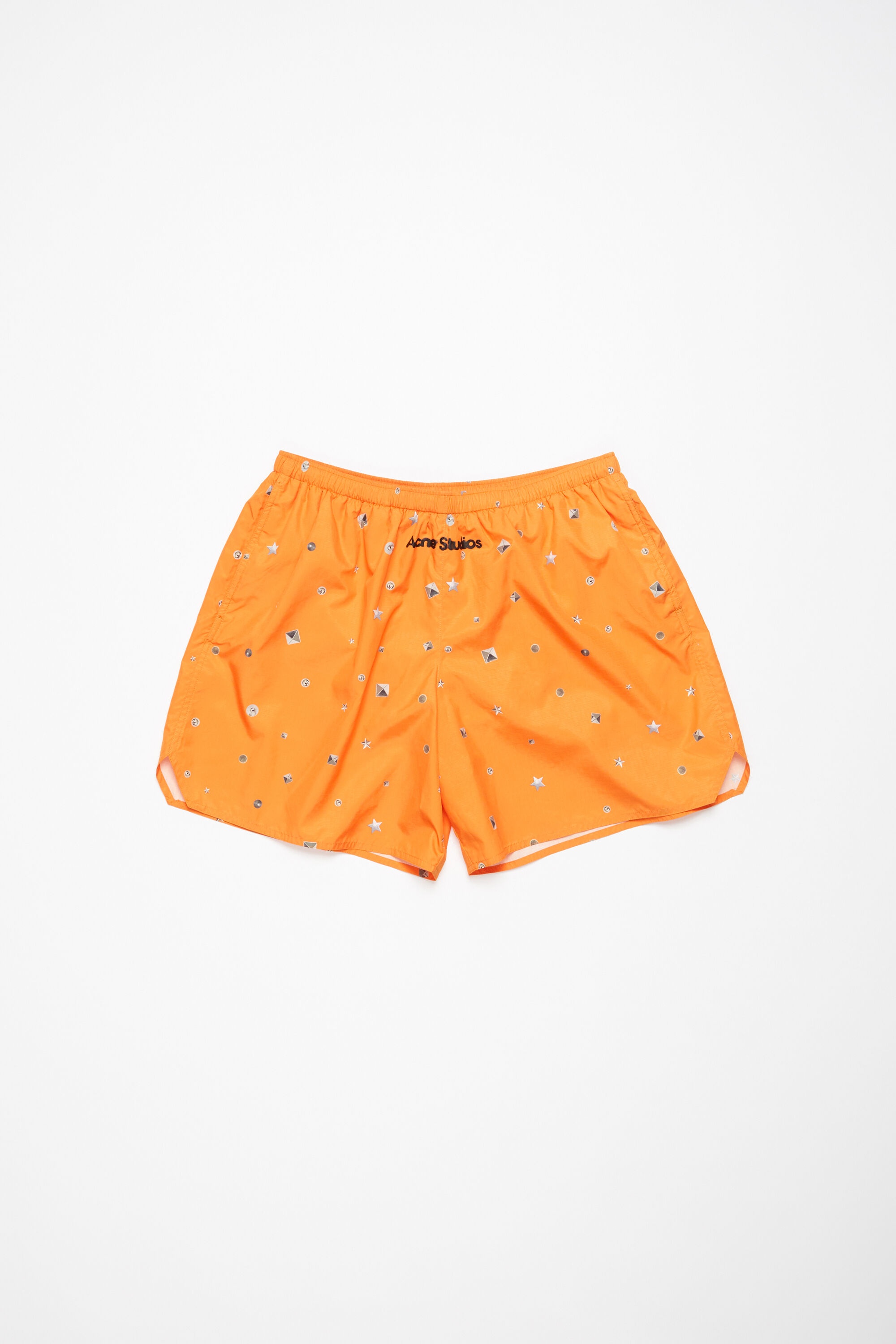 Swim shorts feature a seasonal digital print logo and studs, crafted from a lightweight ripstop fabric. Cut to a regular fit with an elasticated waistband, loose leg and mid-thigh length. - Regular fit - Mid waist - Loose leg - Mid-thigh length - Elasticated waistband with drawcord - Acne Studios logo and studs print - Side pockets with velcro closure - Style ID: FN-MN-SWIM000036 - Shell: 70% Polyester, 30% Nylon, Lining: 85% Polyester, 15% Elastane