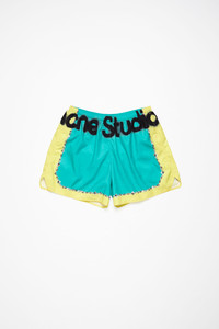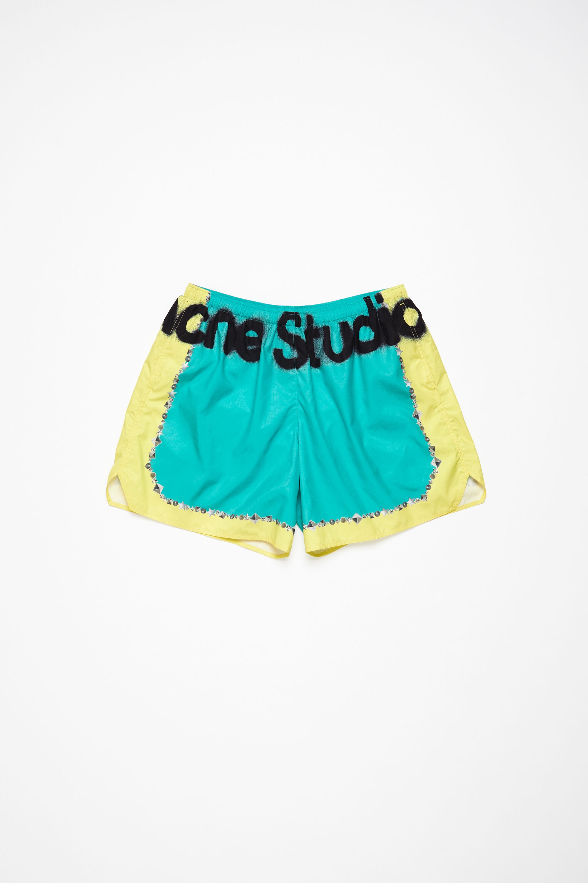 Swim shorts feature a seasonal digital print logo crafted from a lightweight ripstop fabric. Cut to a regular fit with an elasticated waistband, loose leg and mid-thigh length. - Regular fit - Mid waist - Loose leg - Mid-thigh length - Elasticated waistband with drawcord - Acne Studios seasonal logo print - Side pockets with velcro closure - Style ID: FN-MN-SWIM000034 - Shell: 70% Polyester, 30% Nylon, Lining: 85% Polyester, 15% Elastane
