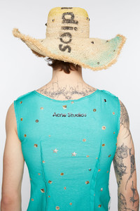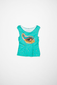 Tank top features a seasonal glitter eye and studs printed animation and silver-toned stud applications. Cut to a fitted unisex fit and hip length. - Fitted unisex fit - Sleeveless - Hip length - Seasonal print and stud application - Acne Studios logo centre back - Raw edges - Darts front and bank - Female model is 180cm/ 5'11 and wears a size S - Male model is 188 cm/ 6'2 and wears a size M - Style ID: FN-UX-TSHI000069 - Made from organically grown cotton. - Shell: 100% Cotton