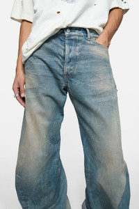 2006 jeans are cut to a relaxed fit with a low waist and wide, long legs. Crafted from rigid denim, featuring a wash with irregular bleach and dirt marks for an authentically worn-in look. - Relaxed fit - Low waist - Wide leg - Long length - 5-pocket construction - Zipper fly closure - Model is 189 cm / 6'2 and wears a size 29/34 - Style ID: ACNE STUDIOS 2006M GOLDMINE - Made from organically grown cotton - Shell: 100% Cotton, Patch: 100% Cow leather