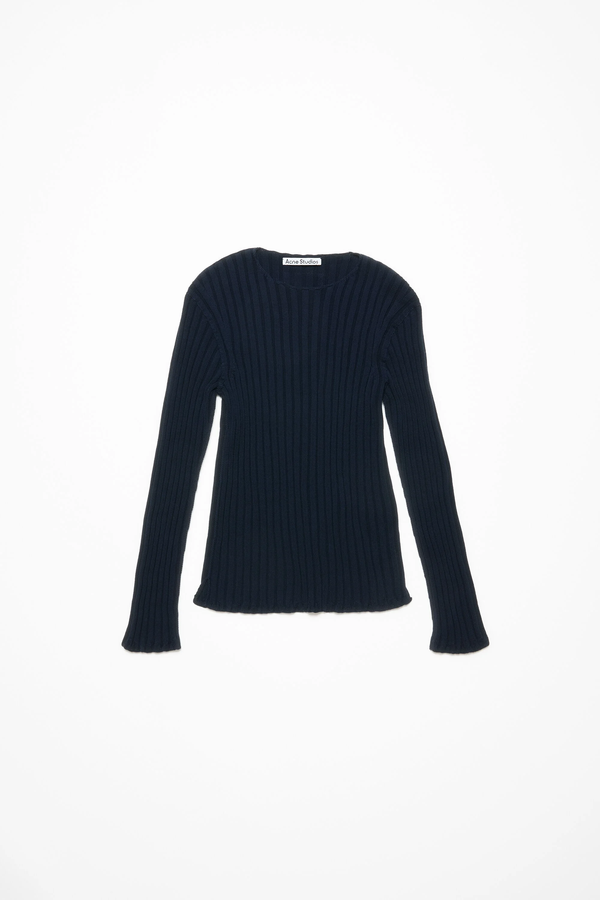 Crew neck jumper crafted in cotton detailed with irregular ribbed details at the neckline, cuffs and hem. Adorned with a seasonal logo label on the back neckline. Cut to regular fit. - Regular fit - Elongated sleeve length - Crew neckline - Ribbed - Logo label - Model is 187 cm / 6'1 and wears a size M - Style ID: FN-UX-KNIT000021 - Shell: 100% Cotton