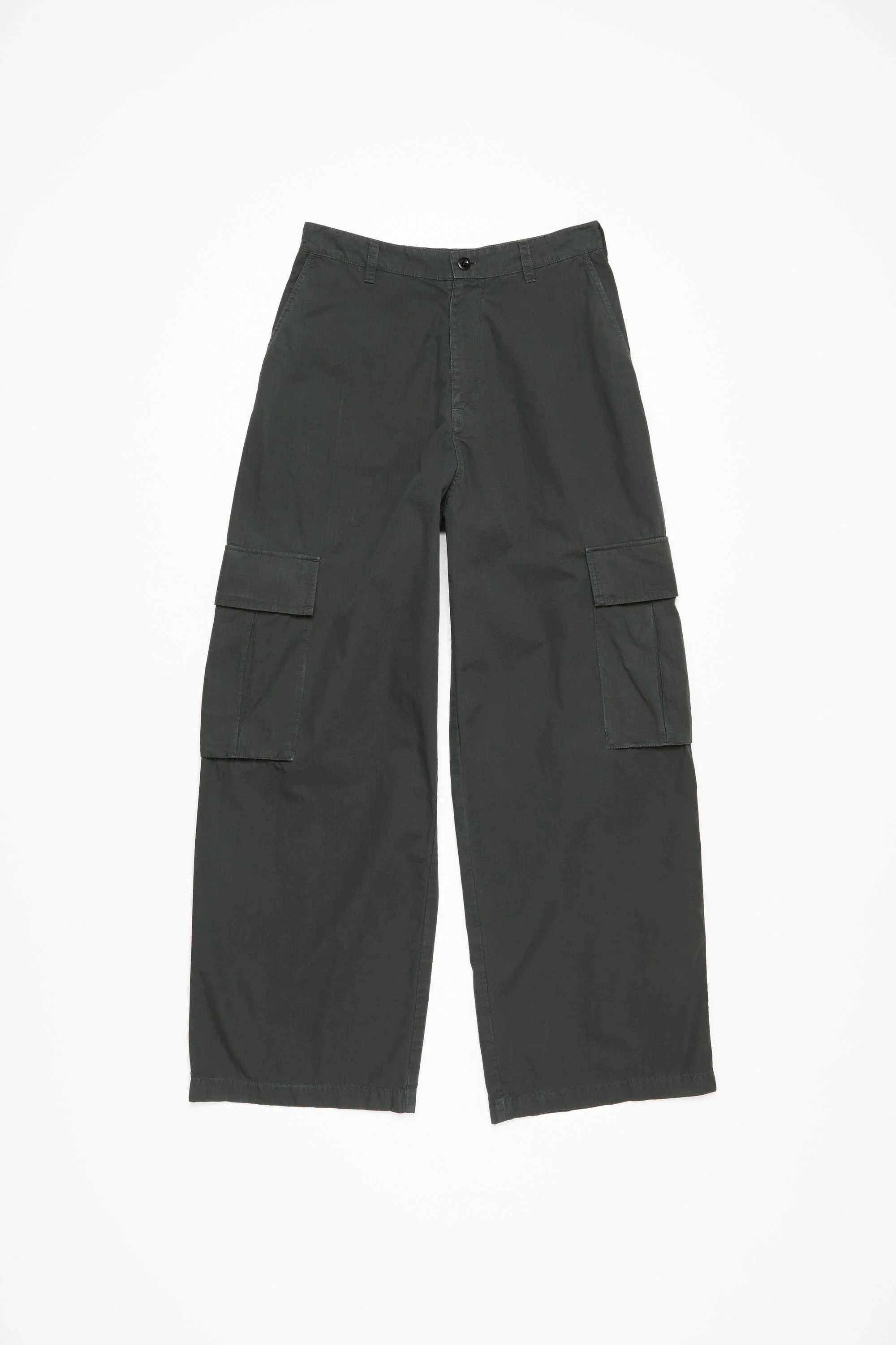 Trousers are crafted from ripstop cotton with a garment-dyed finish, detailed with an Acne Studios logo embroidery on the back and cargo pockets. Cut to a regular fit with a mid-waist, loose leg and long length. - Regular fit - Mid waist - Loose leg - Long length - Logo embroidery - Cargo and back pockets - Model is 187 cm / 6'1 and wears a size 46 - Style ID: FN-MN-TROU001061 - Main material made from organically grown cotton. Lining made from recycled polyester. - Shell: 100% Cotton, Pocket Lining: 65% Recycled polyester, 35% Cotton