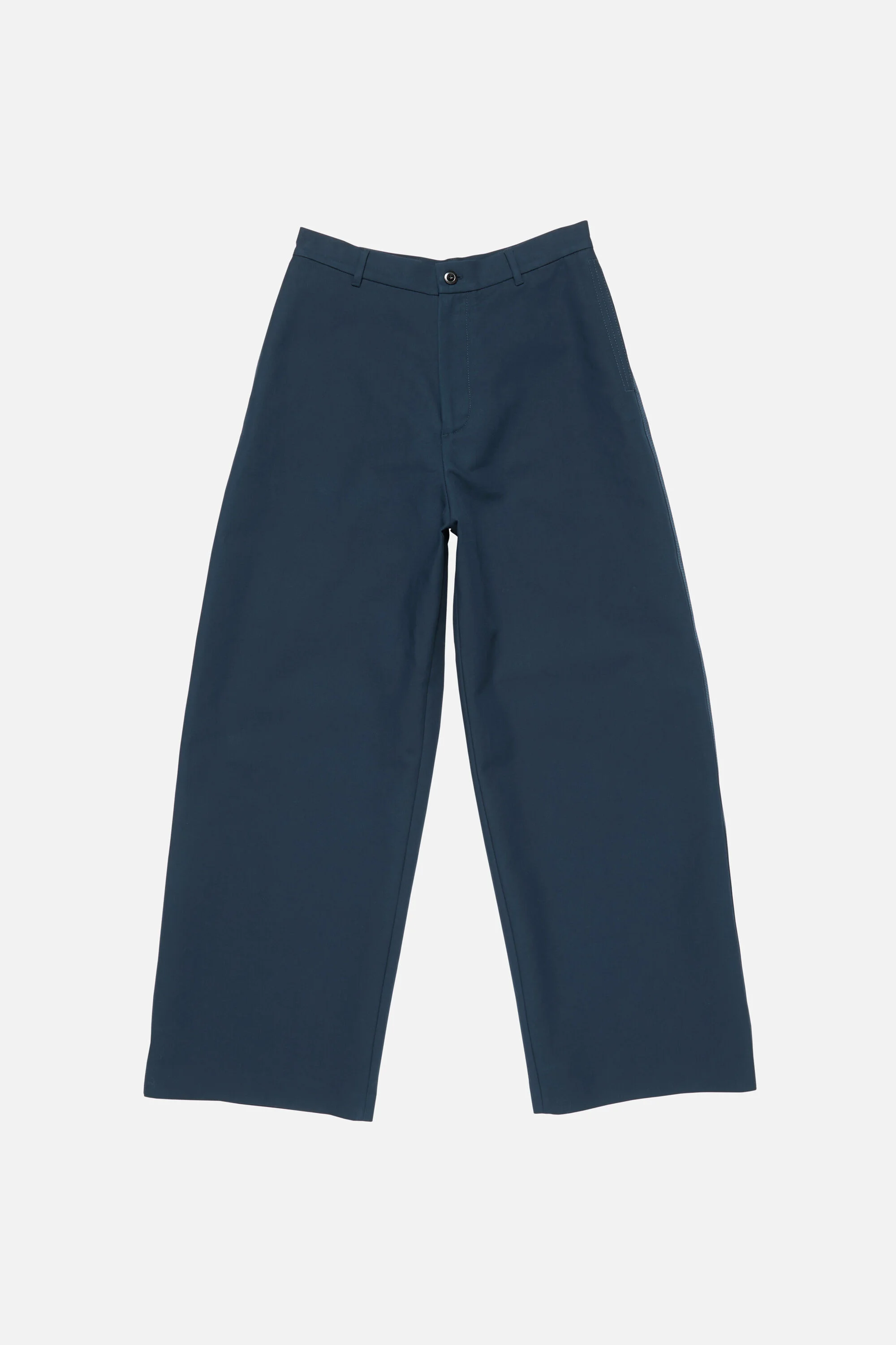 Trousers crafted from smooth cotton satin woven with a double structure for a round, classic hand. Complete with a zip closure, branded military buttons, and a leather logo patch at the back. Cut for a regular fit with a mid waist and long, loose legs. - Regular fit - Mid waist - Long, loose leg - Zip closure - Branded military buttons - Side and back pockets - Acne Studios logo leather patch - Model is 187 cm / 6'2" and wears a size 46 - Style ID: FN-MN-TROU001090 - Made from organically grown cotton - Shell: 100% Cotton