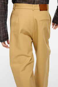 Trousers crafted from smooth cotton satin woven with a double structure for a round, classic hand. Complete with a zip closure, branded military buttons, and a leather logo patch at the back. Cut for a regular fit with a mid waist and long, loose legs. - Regular fit - Mid waist - Long, loose leg - Zip closure - Branded military buttons - Side and back pockets - Acne Studios logo leather patch - Model is 187 cm / 6'2" and wears a size 46 - Style ID: FN-MN-TROU001090 - Made from organically grown cotton - Shell: 100% Cotton