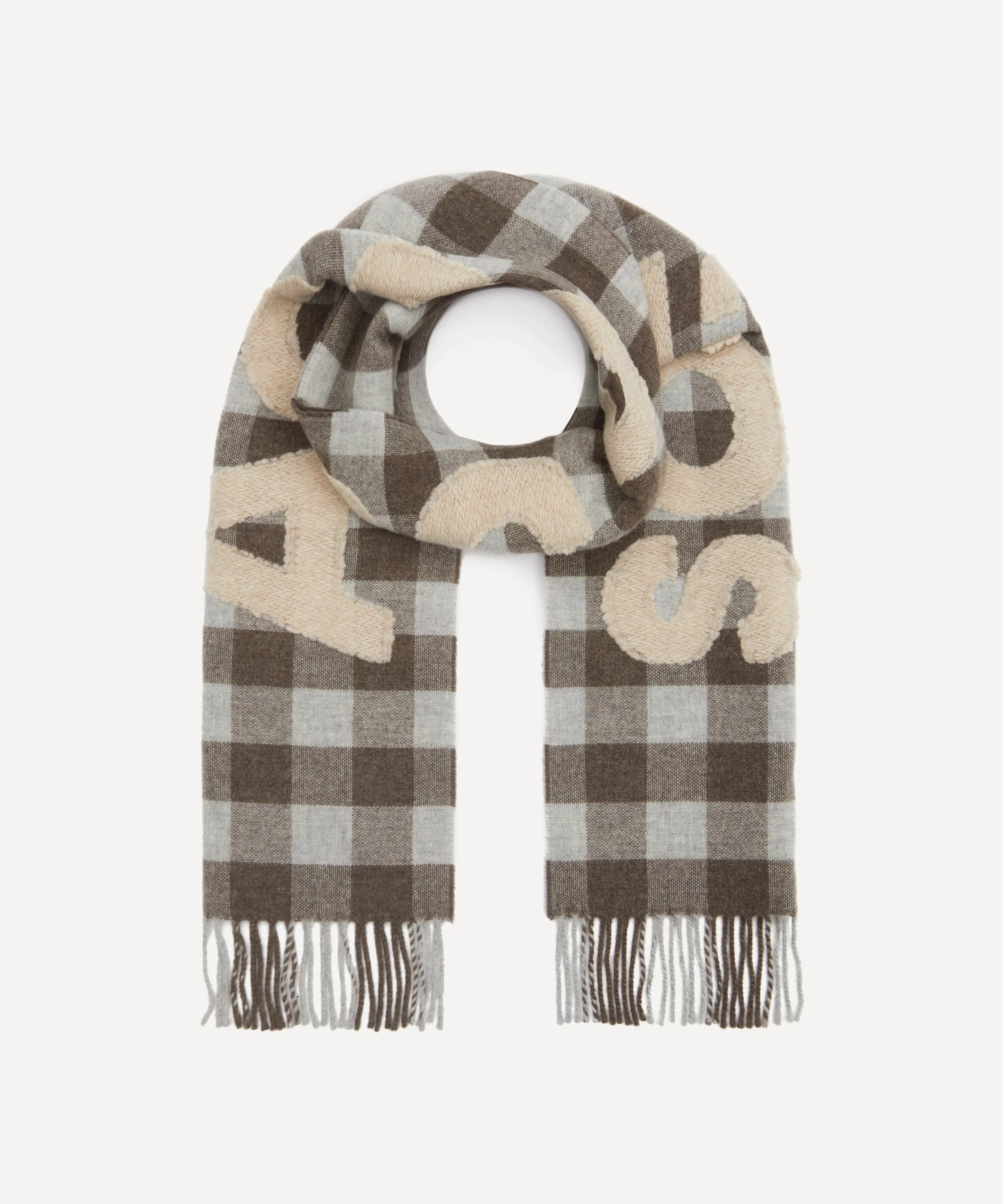 DETAILS Scarf Wool blend All-over check pattern Fringed ends Jacquard woven fil coupe Acne Studios logo COMPOSITION & SIZE 95% Wool; 5% Nylon L: 205cm, W: 37cm
