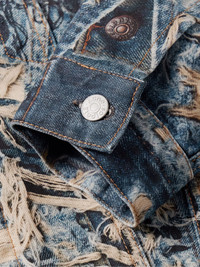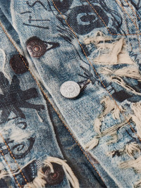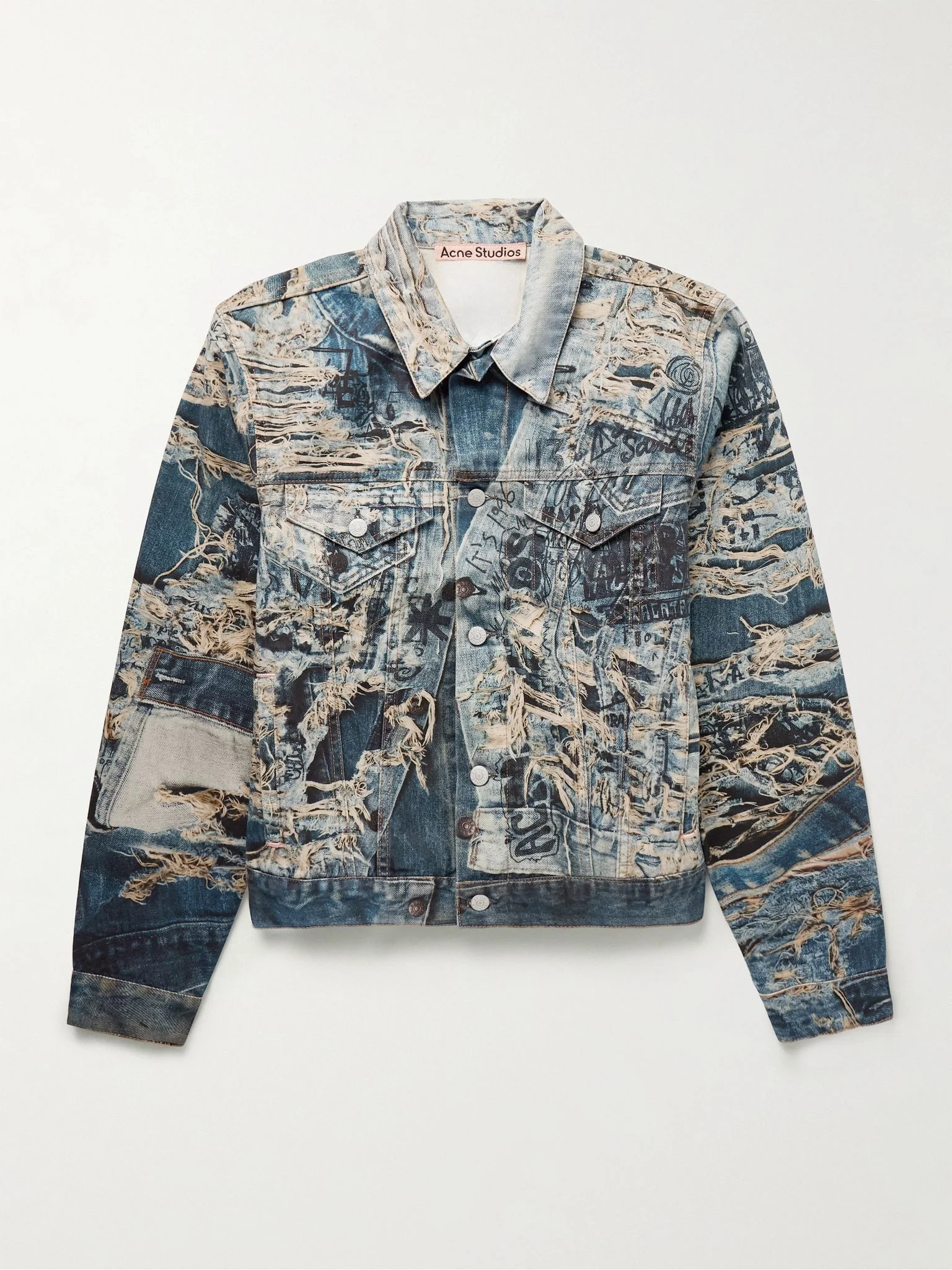 Acne Studios 'Rye' jacket has such a cool, trompe l'oeil design - the seasonal 'Torn Scribble' print creates the illusion that it's layered and thoroughly distressed. It's cut from denim in a boxy, slightly cropped shape. Size & Fit - Fits true to size. Take your normal size - Designed for a regular fit - Cropped in length - Mid-weight, non-stretchy fabric - Model is shown wearing an IT 48 - Model measures: chest 38"/ 96cm, height 6'1"/ 185cm Details & Care - Multicoloured denim - Button fastenings - 100% cotton - Machine wash
