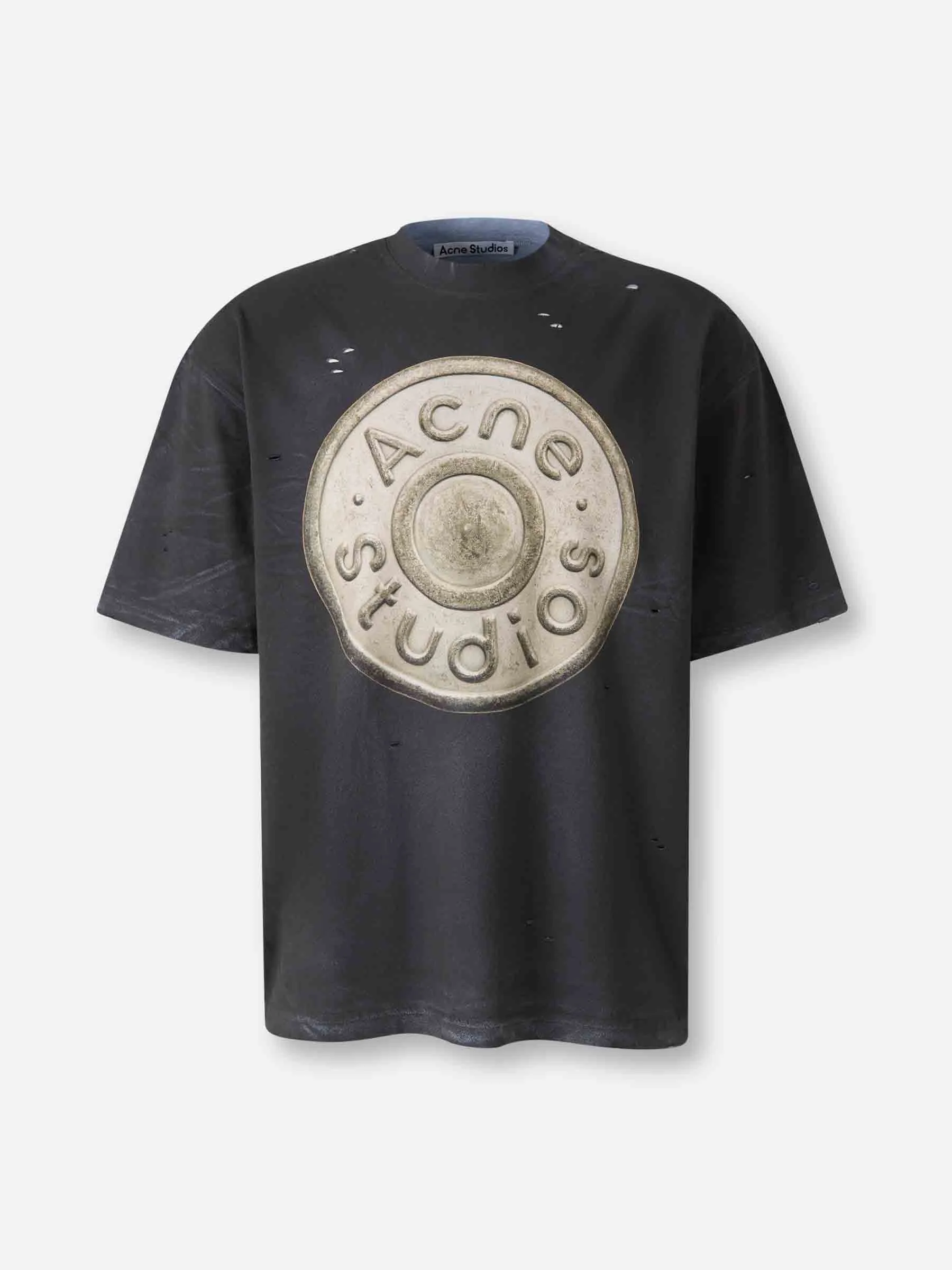 SKU: 553-004479 01 BRAND ID: FN-UX-TSHI000152 Short Sleeve T-Shirt T-shirt By Acne Studios • Canale at the neck • Regular fit • Front print • Distressed finish • Made from soft organic cotton • Short sleeve T-shirt • Round neck Composition: 100% organic cotton Italy