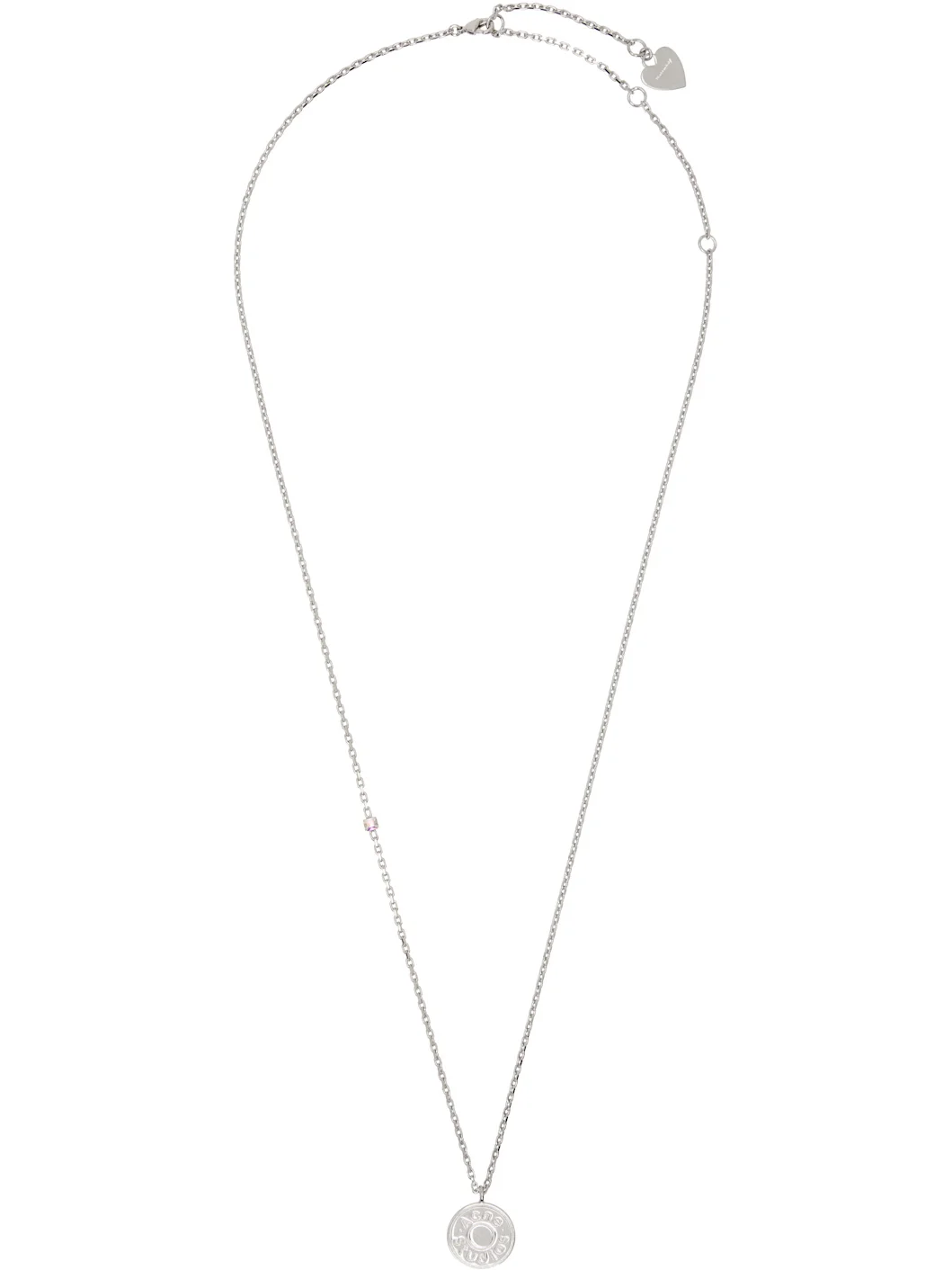 Cable chain necklace in silver-tone brass. · Logo pendant · Crystal at length · Logo-engraved charm at adjustable lobster-clasp fastening · L28" Supplier color: Semi matt silver Brass, crystal. Made in Italy 252129M145001