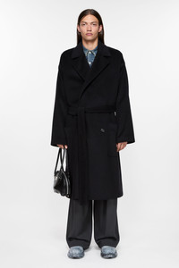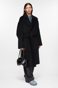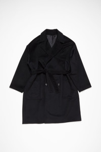 Double-breasted coat crafted in wool with a brushed finish with topstitch detailing. Constructed with front button and belted closure. Cut to a relaxed fit. - Relaxed fit - Double-breasted - Button-up and belt closure - Front patch pockets - Fully lined - Model is 188 cm / 6'2 and wears a size 48 - Style ID: FN-MN-OUTW001175 - Shell: 100% Wool, Lining: 50% Acetate, 50% Preferred viscose, Pocket Lining: 100% Organic cotton