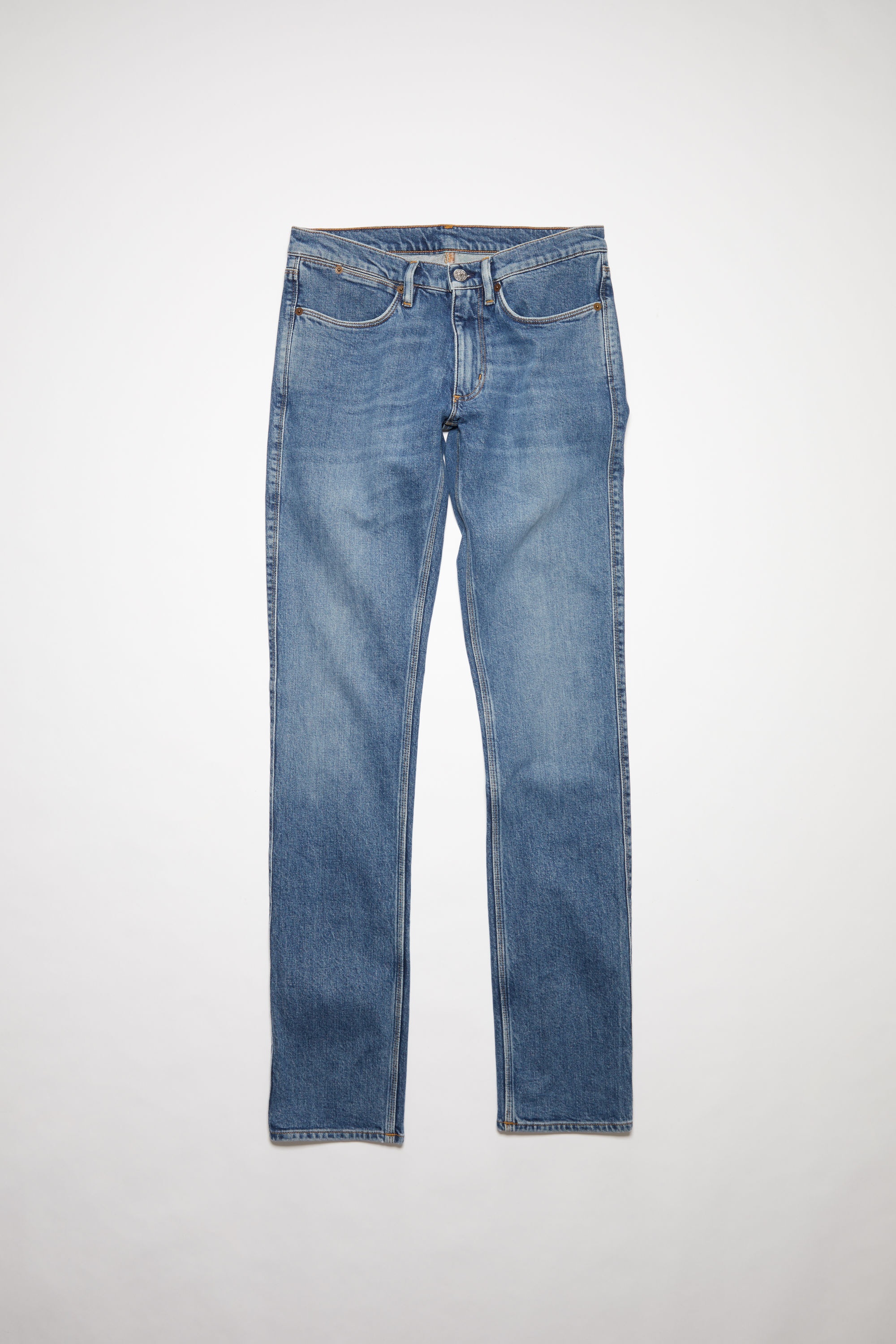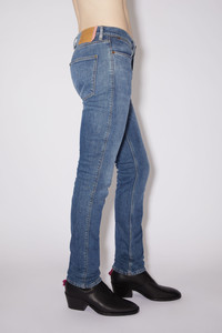 Acne Studios mid blue jeans are cut to a slim fit with a low waist, skinny leg and regular length. The Max jeans are crafted from comfort stretch denim made of a cotton blend. - Slim fit - Low waist - Skinny leg - Regular length - 5-Pocket construction - Zip fly - Made in Italy - Model is 187cm/ 6'1" and wears a size 30/34 - Style ID: Max Mid Blue - Main material: 98% organic cotton, 2% elastane