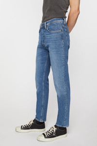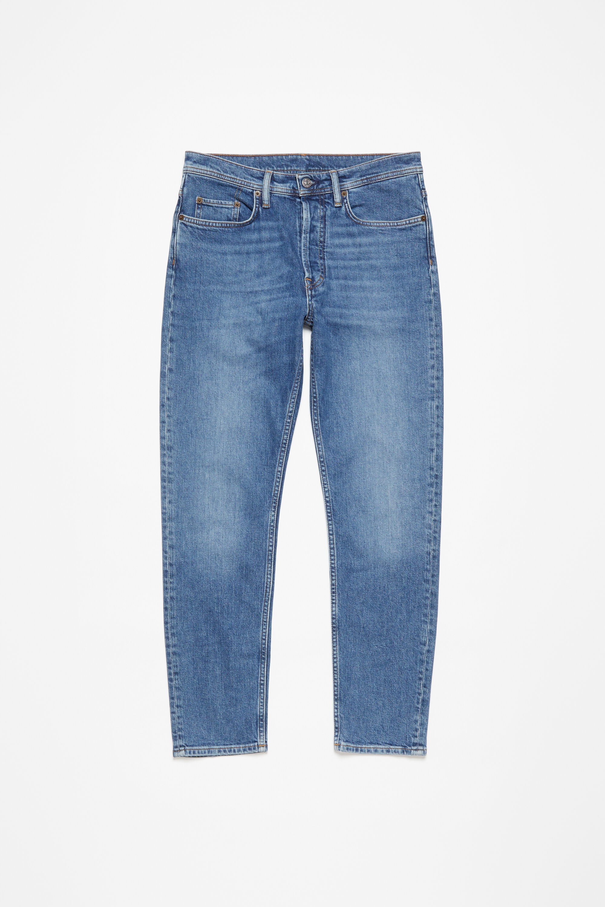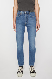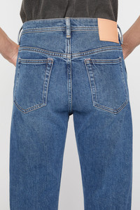 River jeans are cut to a slim fit with a high waist, tapered leg and cropped length. Crafted from comfort stretch denim made of cotton blend. - Slim fit - High waist - Tapered leg - Cropped length - 5-Pocket construction - Button fly - Model is 187cm/ 6'1 and wears a size 29/34 - Style ID: River Mid Blue - Made from organically grown cotton. - Main material: 98% organic cotton, 2% elastane