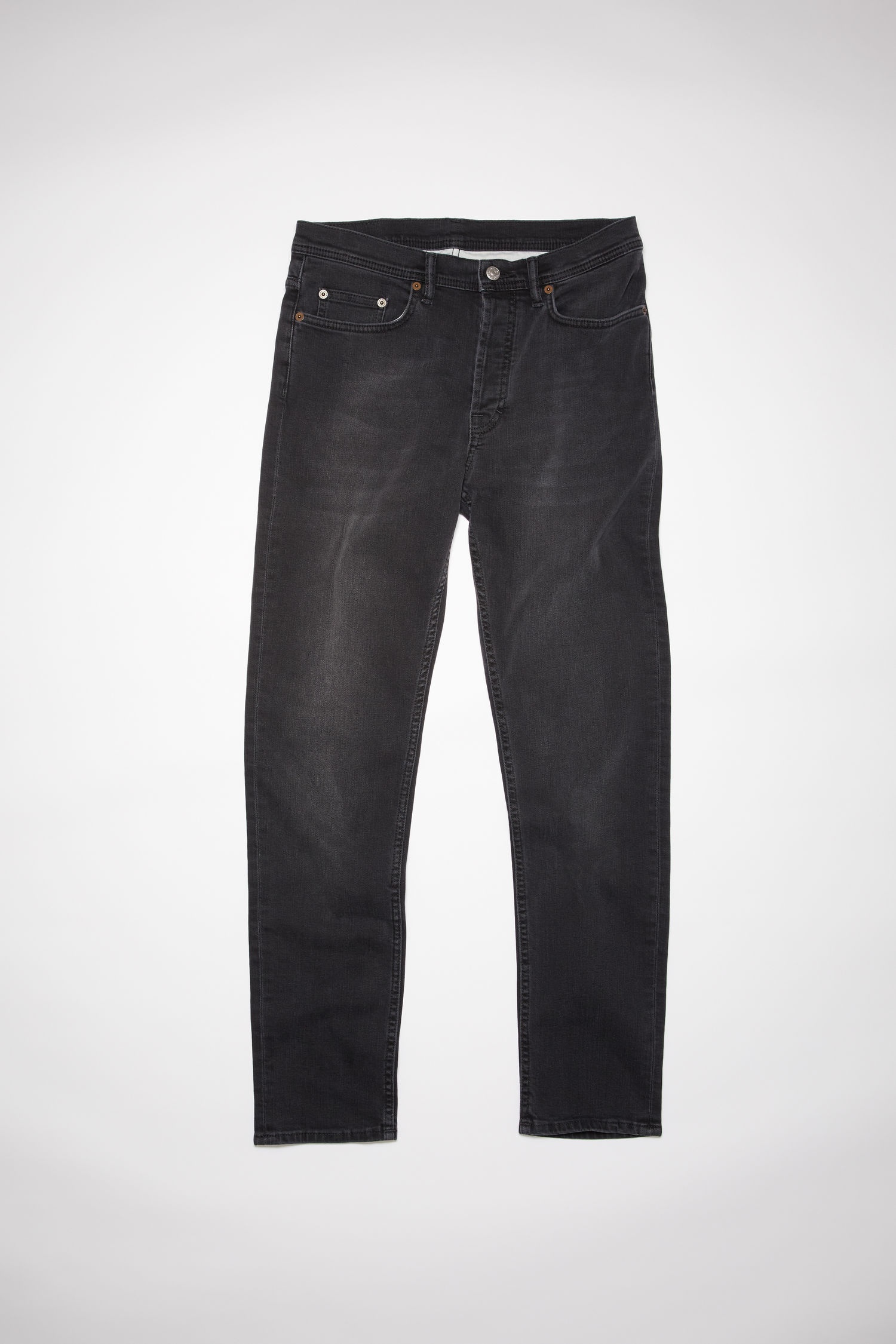 Acne Studios used black jeans are made from comfort stretch denim with a high rise and a slim, tapered leg. Details: - Heavyweight, overdyed denim - High rise - Cropped length - Button fly - Style ID: RIVER USED BLK - Main material: 94% organic cotton, 5% polyester, 1% elastane Sizing: - Slim, tapered fit - Cropped length - True to size - European sizing - Model is 187cm/ 6'1 and wears a size 29/34