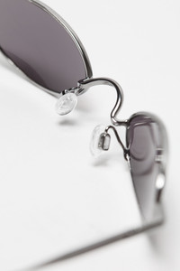 Sunglasses from the SS25 show collection feature a sleek oval shield with stainless steel frames. - Stainless steel frames - Length of temple: 130 mm - Width of the lenses: 48 mm - Height of the lenses: 25 mm - Distance between lenses: 24 mm - Style ID: FN-UX-EYEW000068 - Lens: 100% Nylon, Frame: 50% Sterling silver, 50% Metal