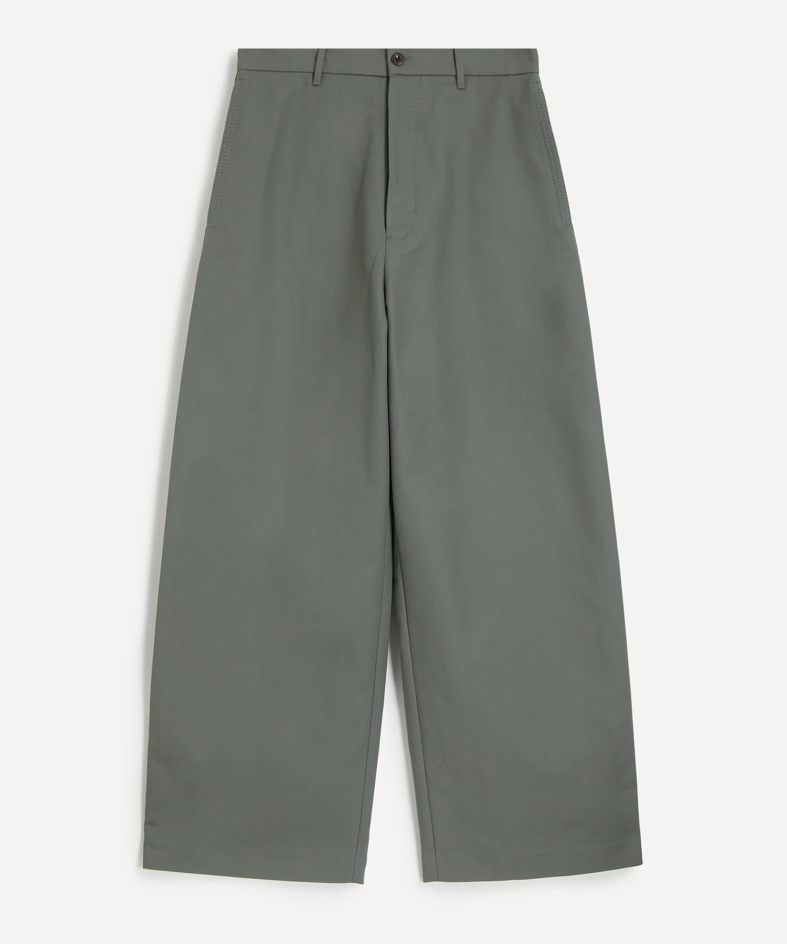DETAILS Cotton satin trousers Regular fit Mid-waist Loose leg Long length Branded military buttons Zip closure Side and back pockets Leather Acne Studio logo patch SIZE & FIT Model is 187cm/6'1.5"; Chest: 82.5cm; Waist: 74cm and wears a size 38/48 COMPOSITION & CARE 100% Cotton Dry clean