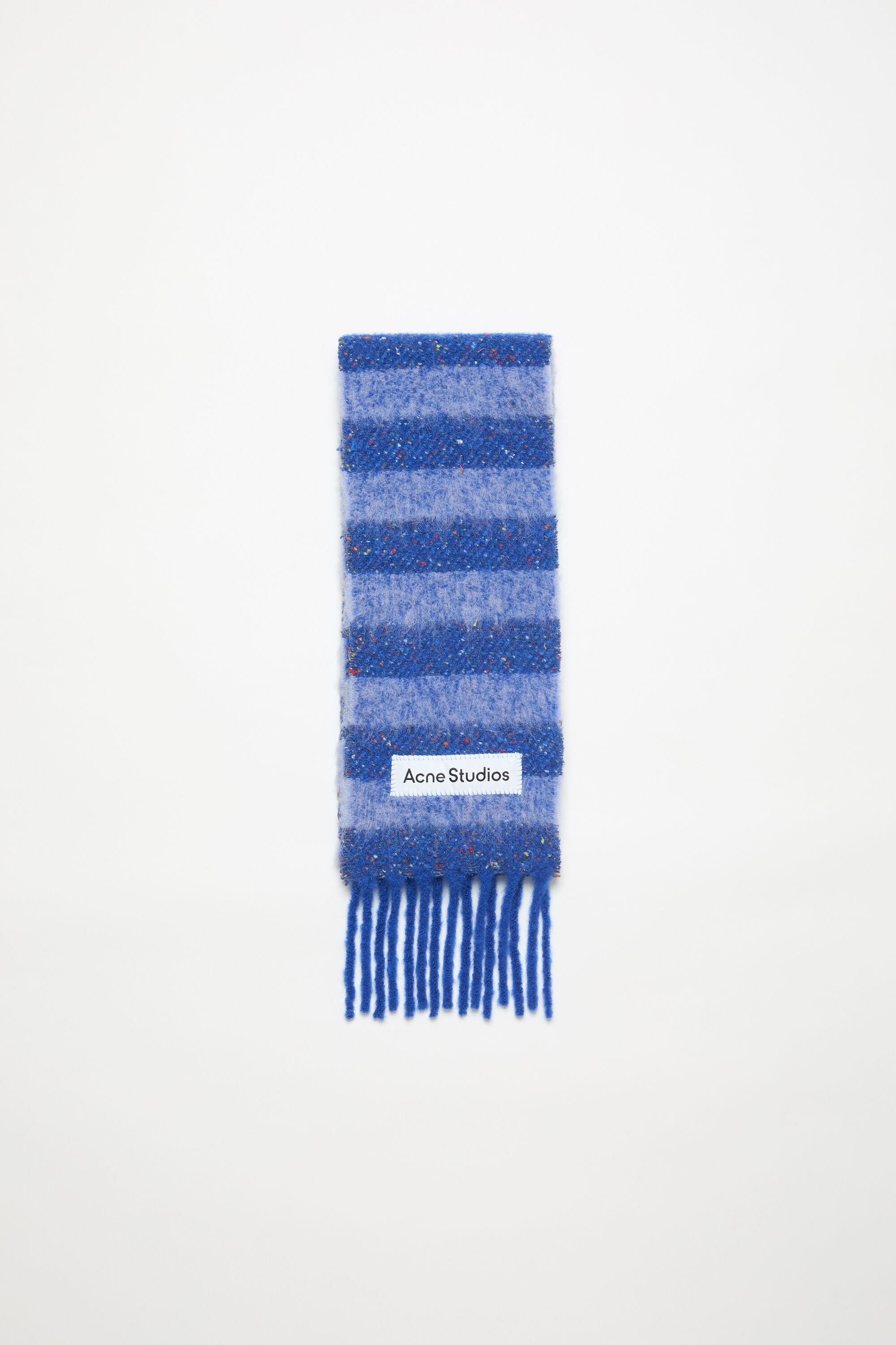 Fringe scarf features a stripe pattern crafted from a textured alpaca blend, detailed with an Acne Studios logo label. - Logo label - Fringed - Measurements: 28 cm; 220 cm - Made in Italy - Style ID: FN-UX-SCAR000407 - Shell: 60% Alpaca, 23% Nylon, 11% Wool, 6% Silk