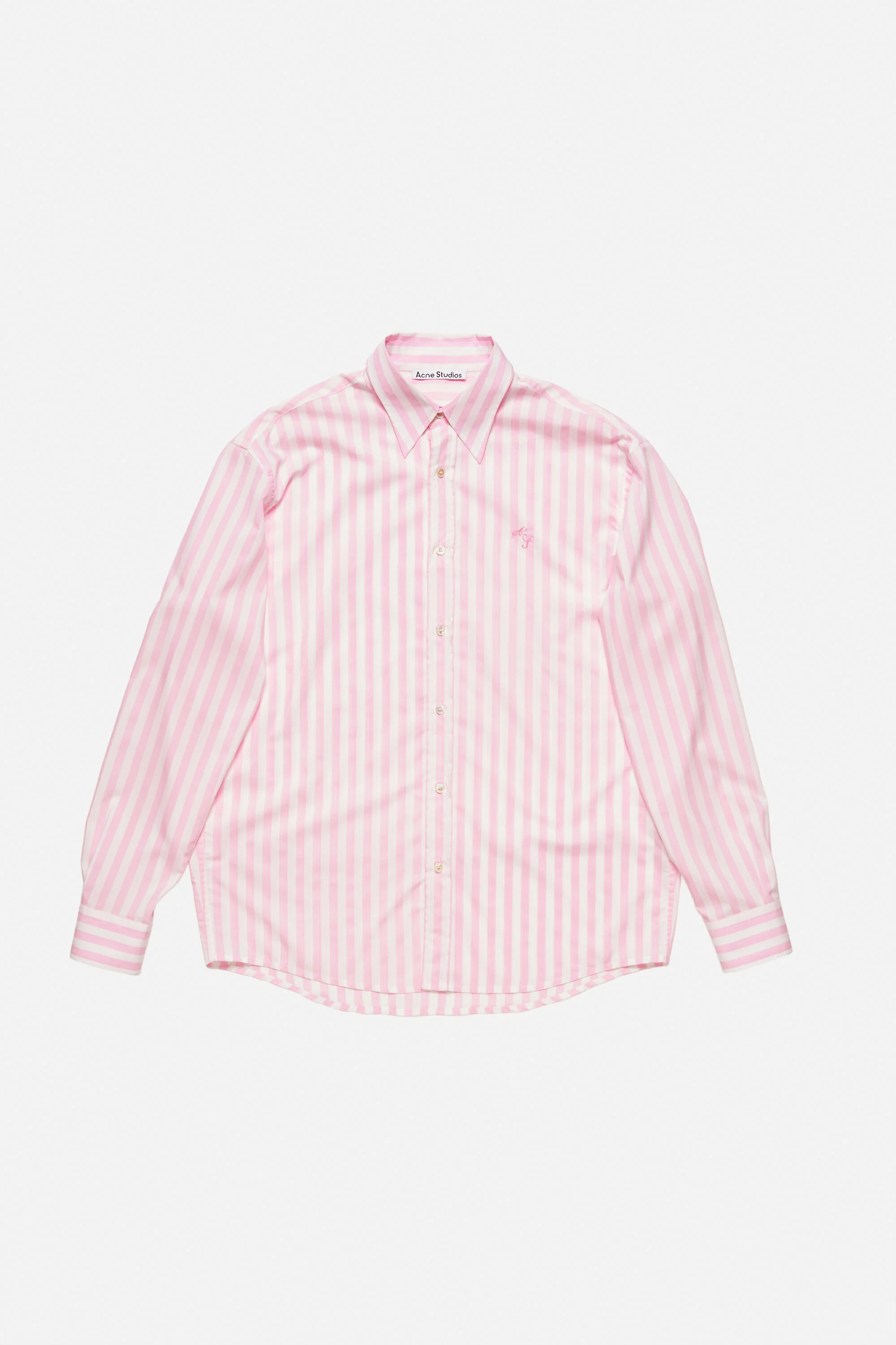 Button-up shirt is cut to a relaxed fit and below hip length. Crafted from a lightweight fluid viscose blend. Detailed with a stripe pattern and AS script embroidery at the chest. - Relaxed fit - Below hip length - Button-up closure - Stripe - AS stripe embroidery - Model is 184 cm / 6′1 and wears a size 46 - Style ID: FN-MN-SHIR000776 - Shell: 63% Viscose, 37% Polyester