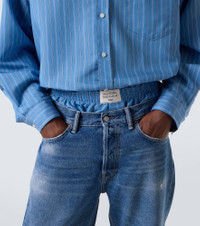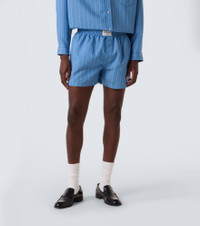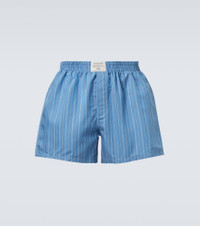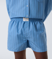 Stockholm-based Acne Studios has a firmly established cult following thanks to its Scandinavian-cool aesthetic. These boxer-style shorts feature a striped pattern and showcase a logo patch on the elasticated waistband. Product Details - Material: 84% lyocell, 16% polyester - Care instructions: machine wash at 30 degrees - Made in Morocco - Designer color name: Blue Multi - Item color: blue - Closure: button fastening - Elasticated waistband - Includes: dust bag - Item number: P01066518 Size & Fit - True to size - Elasticated waist - Non-stretchy fabric - Short-length - Height of model is 189cm-74.5" and wears a size 50
