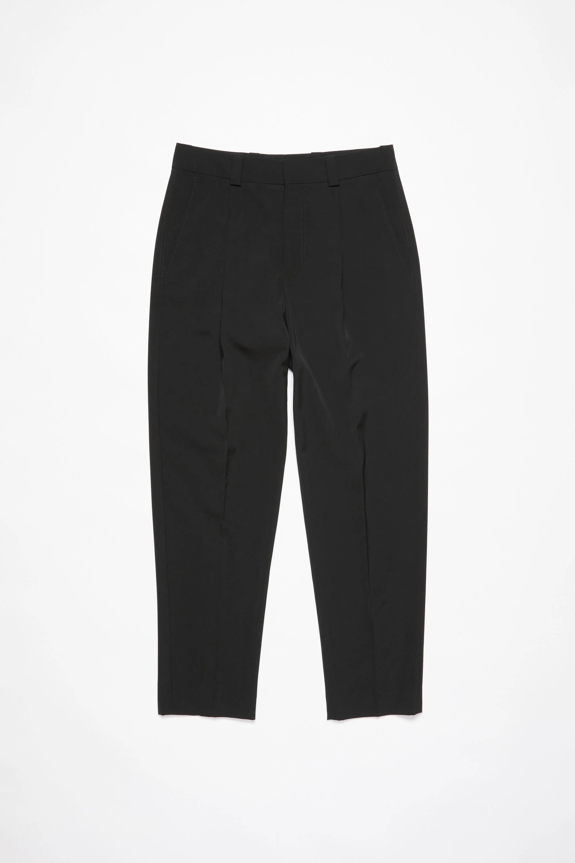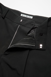 Tailored suit trousers are cut to a regular fit and long length. Crafted from a wool blend, detailed with front and back leg creases. Complete with slanted side seam pockets and double jet pockets on the back. - Regular fit - Long length - Front and back leg crease - Slanted side seam pockets - Back double jet pockets - Model is 185.5 cm / 6′2 and wears a size 46 - Style ID: FN-MN-TROU000832 - Shell: 55% Recycled polyester, 45% Responsible wool, Pocket Lining: 50% Acetate, 50% Preferred viscose