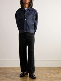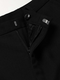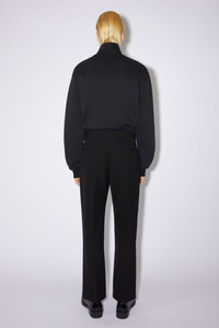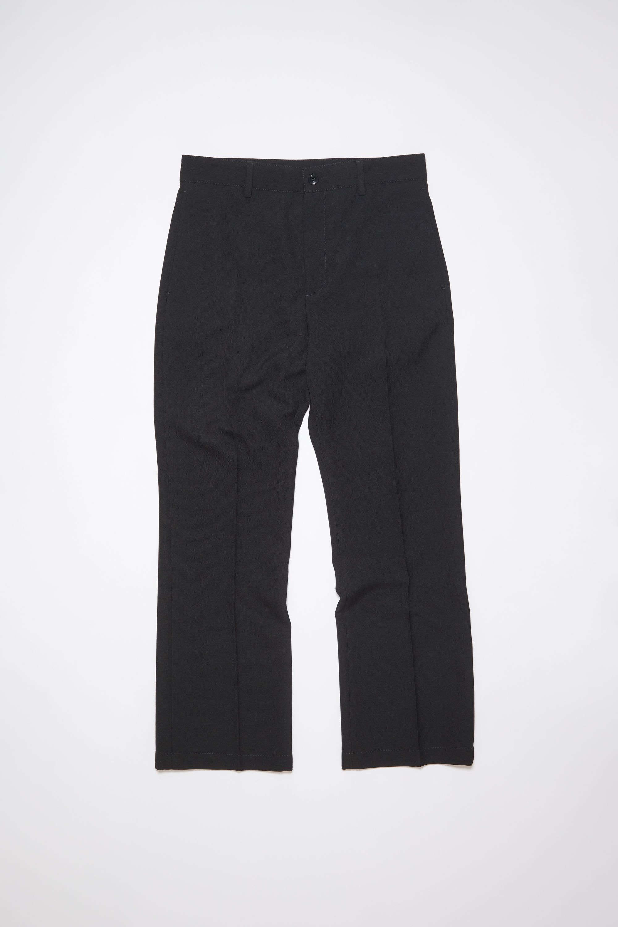 Acne Studios black tailored trousers are crafted from a wool blend. Detailed with side pockets and back pockets. Cut to a regular fit and long length. - Regular fit - Long length - Side pockets - Back welt pockets - Model is 183 cm / 6'0 and wears a size 46 - Style ID: FN-MN-TROU000817 - Main material made with certified wool according to the Responsible Wool Standard and recycled polyester - Shell: 55% Polyester, 45% Wool, Pocket Lining: 50% Acetate, 50% Viscose