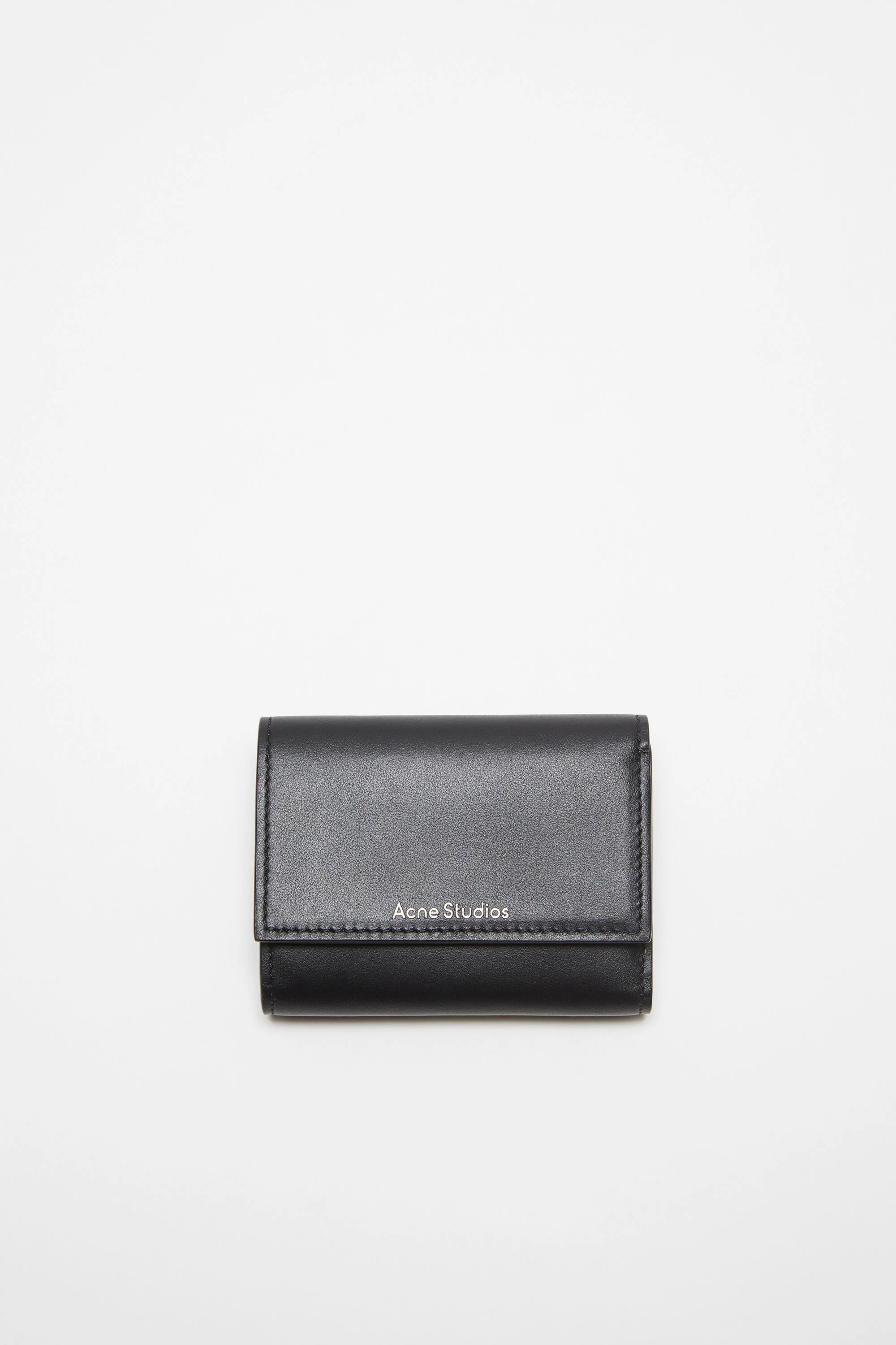 Trifold wallet features a folded construction crafted from smooth leather and detailed with an Acne Studios logo on the front. Complete with a coin pocket compartment on the back, interior card slots and a larger compartment. - Trifold construction with snap button closure - Acne Studios logo - Back coin pocket with snap button closure - Large comparment inside - Card slot compartments inside - Measurements: 75 mm; 97 mm; 30 mm - Style ID: FN-UX-SLGS000261 - Shell: 100% Calf leather