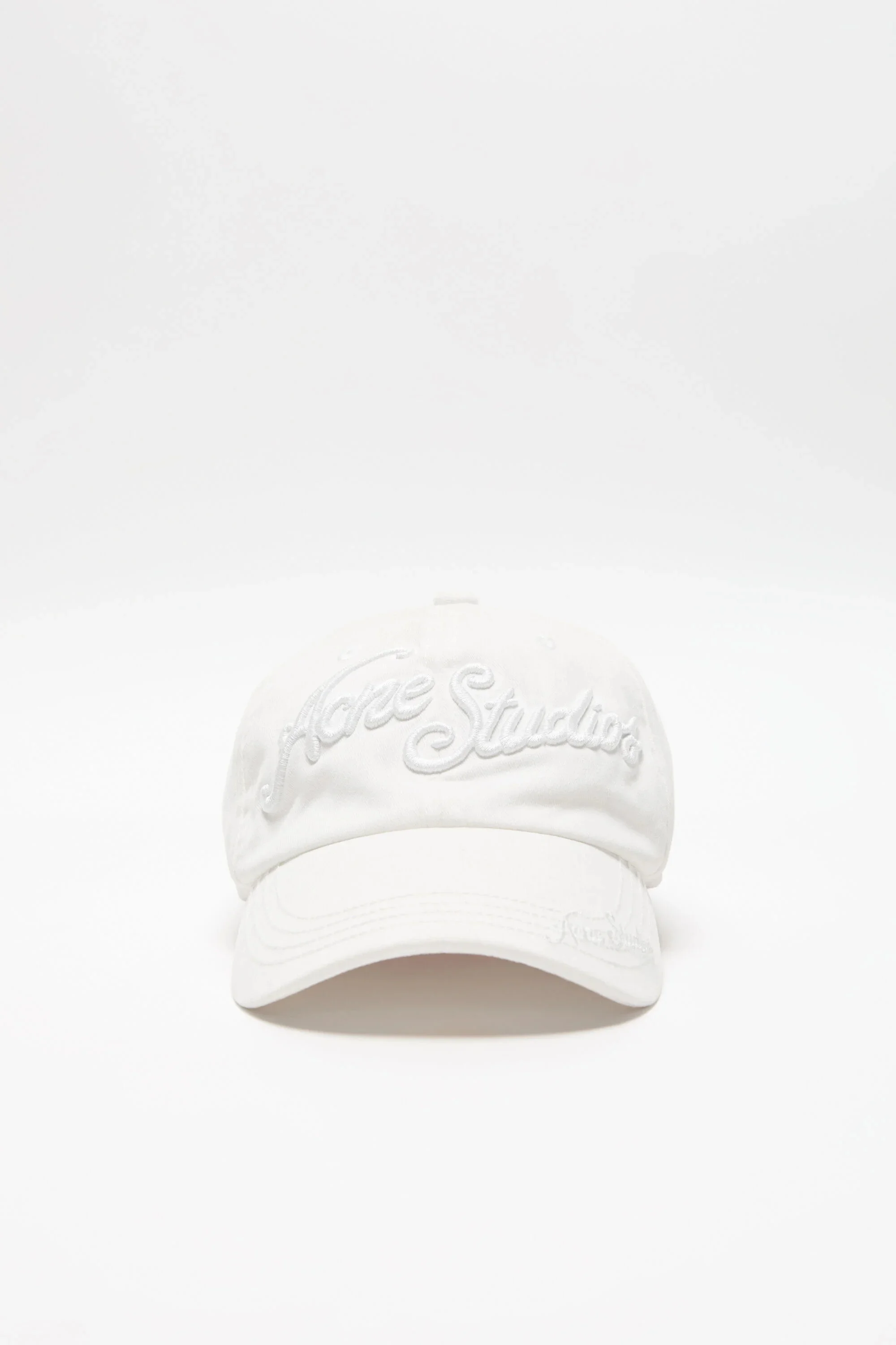 Baseball cap features a seasonal Acne Studios 3-D embroidered logo, crafted from washed twill cotton and detailed with an adjustable D-ring. - Embroidered logo - Curved brim - Adjustable d-ring closure - Embroidered eyelets - Measurements: 59 cm - Style ID: FN-UX-HATS000339 - Made from organically grown cotton - Shell: 100% Cotton, Lining: 100% Cotton