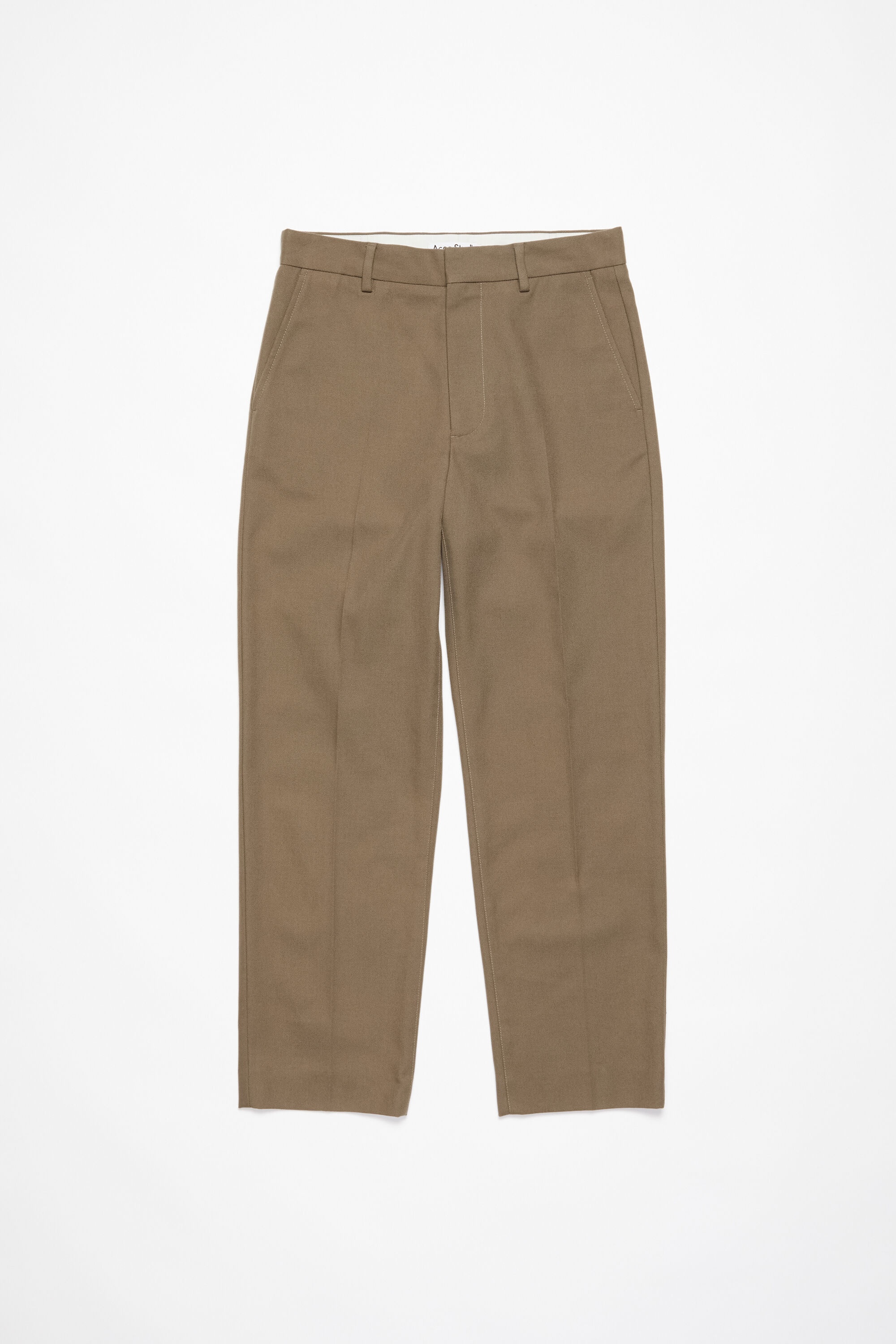 Trousers are cut to a regular fit. Crafted from a twill cotton blend with slanted pockets and a back patch pocket. - Regular fit - Slanted pockets - Back patch pocket - Zip fly closure - Model is 186 cm / 6′1 and wears a size 46 - Style ID: FN-MN-TROU000891 - Shell: 50% Cotton, 50% Polyester, Pocket Lining: 65% Polyester, 35% Cotton
