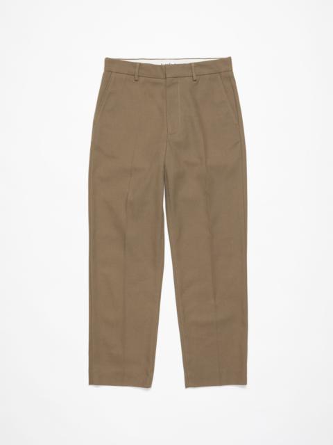 Trousers are cut to regular fit. Crafted from a twill cotton blend, complete with slanted pockets and a back patch pocket. - Regular fit - Slanted pockets - Back patch pocket - Zip fly closure - Model is 184 cm / 6′1 and wears a size 46 - Style ID: FN-MN-TROU000891 - Shell: 50% Cotton, 50% Polyester, Pocket Lining: 65% Polyester, 35% Cotton
