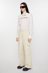 Casual trousers are cut to a relaxed fit with a mid waist, straight leg and long length. Detailed with cargo pockets and reinforced knee panels. Crafted from twill ripstop cotton blend. - Relaxed fit - Mid waist - Straight leg - Long length - Waistband with internal drawcords - Reinforced knee panels - Cargo, side and back pockets - Acne Studios silicone logo patch - Model is 187 cm / 6′2 and wears a size 46 - Style ID: FN-MN-TROU000944 - Shell: 82% Cotton, 18% Polyester, Pocket Lining: 65% Recycled polyester, 35% Cotton