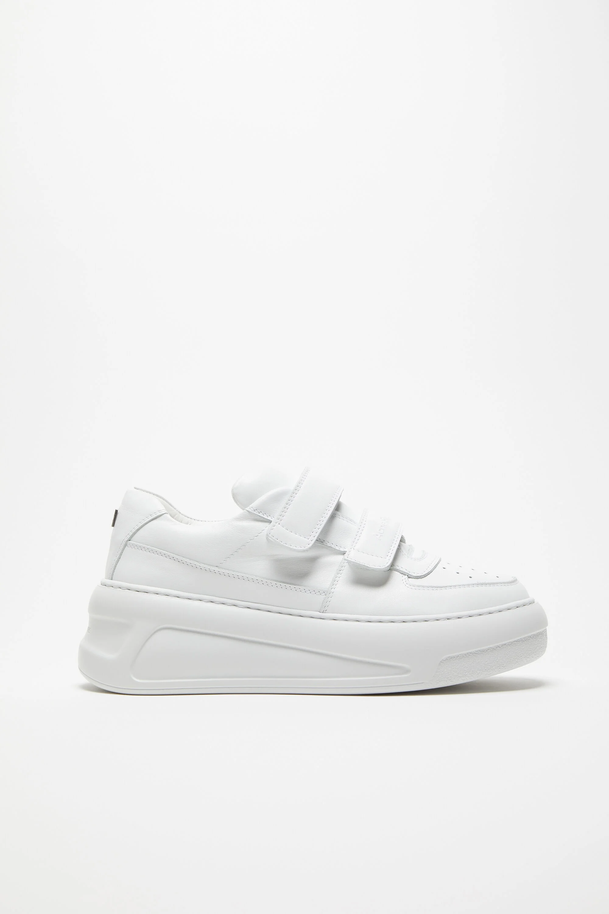 Velcro sneakers feature an 80s tennis trainers-inspired construction with chunky soles, crafted from leather and detailed with a Face logo animation. - Round toe sneakers - Velcro closure - Face logo detailing - Acne Studios branding - Sole height: 4 cm - Style ID: Steffey U Friend Raise - Uppers: 100% Preferred cow leather, Lining: 80% Recycled polyester, 20% Polyester, Soles: 100% Ethylene-vinyl acetate