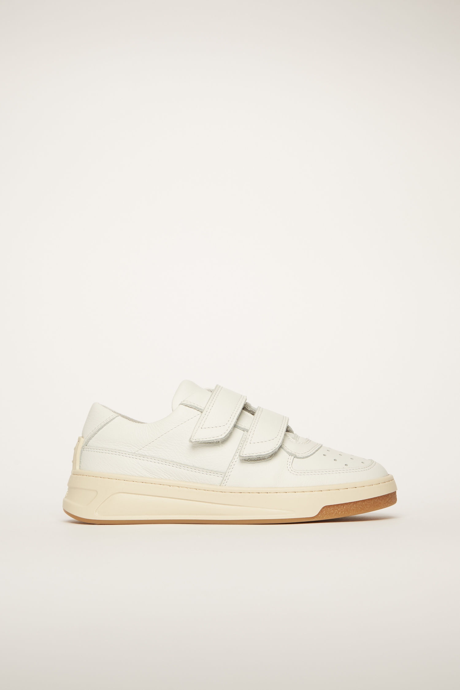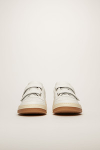 Acne Studios Perey white sneakers are crafted to a round toe in calf leather and finished with a face motif on the back sole. Details: - Face motif on the rubber sole - Velcro-fastening straps - Padded tongue and heel - Mesh lining - Round toe - Uppers: 100% Calf leather, Soles: 100% Thermoplastic polyurethane Sizing: - Sole height: 30mm - True to size - European sizing