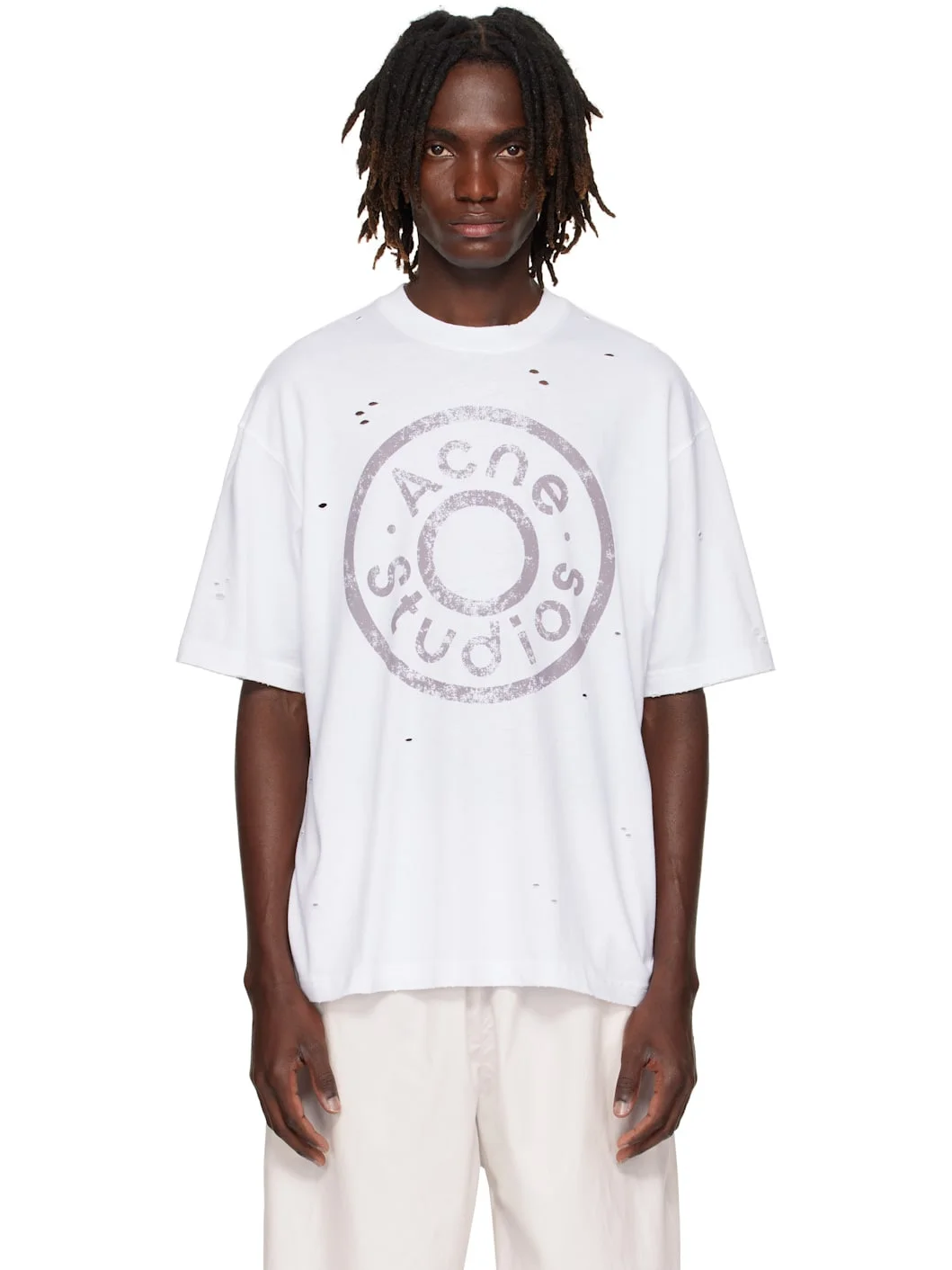 Organic cotton- and recycled polyester-blend ribbed jersey T-shirt. · Distressing throughout · Crewneck · Crackled logo printed at front · Dropped shoulders Supplier color: Optic white 75% organic cotton, 25% recycled polyester. Made in Portugal 252129M213053