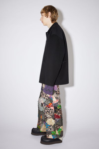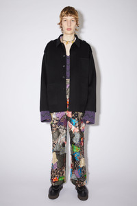 Acne Studios black double-faced jacket is crafted from wool and features a discrete button closure and patch pockets. Cut to a regular fit with slightly padded shoulders and a regular length. - Double-faced wool - Discrete button-up closure - Patch pockets - Waist tabs with button closure - Style ID: FN-MN-OUTW000818 - Regular fit - Slightly padded shoulders - Hip length - European sizing - Model is 187 cm / 6'1" and wears a size 48 - Shell: 100% Wool, Sleeve Lining: 55% Polyester, 45% Viscose
