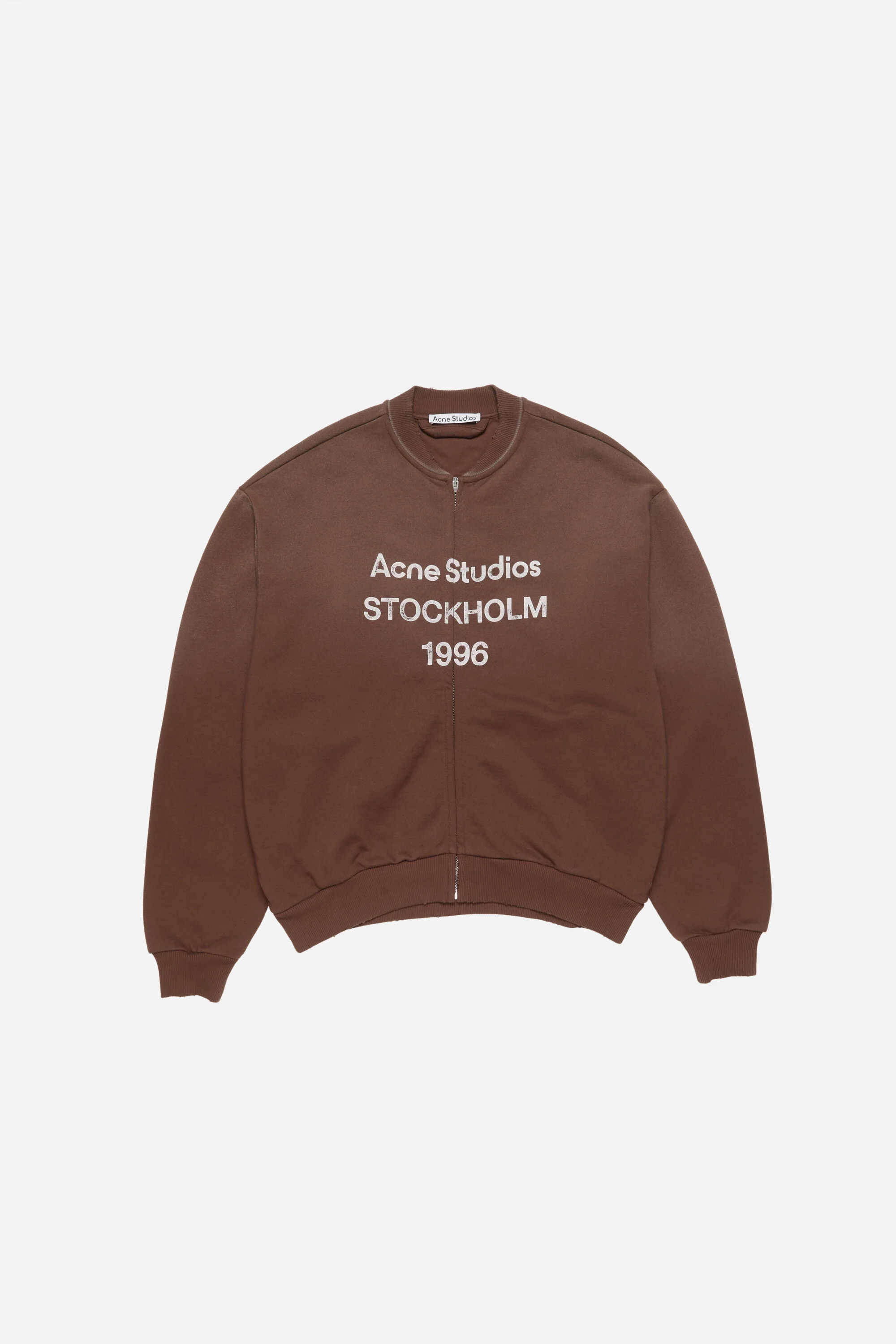 Crewneck zip cardigan crafted from a cotton-blend fabric treated for a worn-in look. Features an Acne Studios 1996 logo print on the front, ribbed neck, cuffs, and hem, as well as distressed detailing throughout. Complete with side pockets. Cut for a relaxed fit and below-waist length. - Relaxed unisex fit - Below-waist length - Zipper closure - Acne Studios 1996 logo stamp - Distressed details at rib - Side seam pockets - Female model is 179 cm / 5′9 and wears a size XS - Male model is 189 cm / 6′2 and wears a size M - Style ID: FN-UX-SWEA000052 - Made with organically grown cotton - Shell: 89% Cotton, 11% Polyester