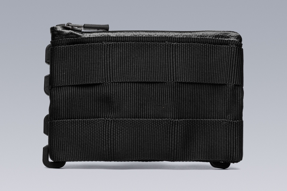 Description MP3TS is a Third Arm card wallet. Minimalist in design, its body is constructed of TEC SYS webbing. As such, it can be affixed to any ACRONYM TS or M product in an almost endless variety of ways. Its central divider sleeve is made of transparent X-PAC and can hold either cards or coins. Delimited. Autarchic. MOLLE / PALS compatible. Fabric Technology TEC SYS WEBBING (100% PA) Sizing FORMAT: _ [ + 11 × 7.5 cm ] Weight: 30 g (Including removable parts) Systems ACRONYM TEC SYS TEC SYS GRID: Rows: 2 Channels: 6 Subsystems Modular: _Slotted Loop Pockets: 2 _External: 1 _Internal: 1 Includes Slotted Loops: 4 [ Removable ] Interface with All ACRONYM Tec Sys [ TS ] bags and garments All ACRONYM 3RD ARM Modular [ M ] pockets