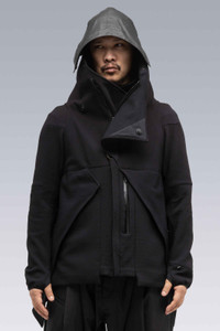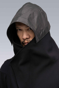 schoeller® WB-400™ Interops Cover Description Built from remarkably impervious Swiss-made schoeller® WB-400™ softshell fabric, CP2-SS is a state of the art ǍCROŇYMř Interopsǽ cover. A vest/cape hybrid, its two-tiered construction allows for 3RD ARM access without the need for an additional zipper. It closes with a unique doubled-up center front zip, optimizing coverage and minimizing interference. The JacketSlingǽ can be worn either inside, or partially outside the garment. This gives you the option of having the interior or exterior face visible when the garment is slung (wet side / dry side). A removable Storm Hood (2 layer ePTFE fabric with taped seams), generous pockets, and AuxZipǽ compatibility round out the package. [ Shown in size: M. Fits: LOOSE ] Fabric Technology schoeller® WB-400™ 3XDRY® Softshell (45% PA, 40% PES, 11% PU, 4% EL) Made in Switzerland Hood in 2 Layer ePTFE fabric [ Taped ] Sizing S M L XL 1/2 Chest 58 60 62 64 Length 83 85 87 89 All measurements in centimeters. Weight: 896 g (size M, including removable parts) Systems ǍCROŇYMř INTEROPSǽ (PAT.) Subsystems JacketSlingǽ AuxZipǽ ( F ) Pockets: 3 _External: 3 _Internal: 0 Includes JacketSlingǽ [ Removable ] Storm Hood [ Removable ] Interface with All ǍCROŇYMř INTEROPSǽ bags All ǍCROŇYMř AuxZipǽ ( M ) units