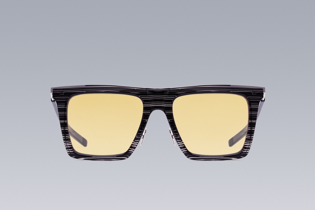 Vanta. Mirrorshade. Goldeneye. The first ACRONYM sunglasses. F1-T is a modern angular silhouette that can be worn in both high sun and low light. Precision engineered and hand made in Japan from a combination of materials of the highest grade: titanium, beta-titanium, stainless steel, and cellulose based acetate (non-petrochemical). Both the main and clip-on lenses are CR-39 and tinted in three distinctive color combinations. F1-T-A features a high gloss black palladium frame with blue tinted lenses, and black palladium clip-ons with dark gray lenses. F1-T-B features an interlaced transparent and black frame with yellow tinted lenses, and sliver clip-ons with sliver lenses. F1-T-C features a transparent frame with mixed sliver and gold components and light pink tinted lenses, together with gold clip-ons with (real) gold lenses. Fabric technology Frames: Cellulose-based acetate, beta-titanium, titanium, stainless steel Clip-ons: Titanium [ Grade 5 ] Lenses: CR-39 Sizing One size _ [ 51 x 20 x 145 mm ] Weight: 50g [ sunglasses ] / 220g [ incl. packaging ] Includes Magnetic Leather Case Microfiber Drawstring Pouch Microfiber Lens Cloth Box Actual product may differ from images.