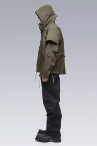The new funk brutalism. Compact and comprehensive, J101 makes no bones and brooks no compromise. Stopless. Direct. Asymmetric. Jacketslingǽ for portability. AuxZipǽ for modularity. EscapeZipǽ for rapidity. Interopsǽ for variablility. 3L GORE-TEX® Pro** for extremity. [ **Built with enhanced Gore-Tex® Pro most breathable technology to provide extreme breathability—minimizing moisture buildup to give more comfort in more conditions—with retained ruggedness, uncompromised waterproof and windproof protection, and superior lightweight qualities with an improved environmental footprint. ] [ **Optimized for breathability during higher-intensity activities, while retaining the ruggedness and waterproof ratings for which Gore-Tex® Pro is known. This technology newly introduces the lightest laminates ever offered in the Gore-Tex® Pro category, using 30-denier face textiles and the new solution-dyed version of the robust Micro Grid™ backer. ] [ Shown in size: M. Fits: STRAIGHT ] Fabric technology 3L GORE-TEX® PRO [ Most breathable technology ] (72% PA, 28% ePTFE) With solution-dyed Micro Grid™ backer for improved environmental footprint GUARANTEED TO KEEP YOU DRY™ Sizing Size XS S M L XL 1/2 Chest 59 62 65 68 71 Length 63 66 69 72 75 Shoulders 16 16.5 17 17.5 18 Sleeves 60,5 62,5 64,5 66,5 68,5 All measurements in centimeters. Weight: 590g (size M, color: Black, including removable parts) Systems ACRONYM INTEROPSǽ (PAT.) ACRONYM SOUNDǽ (PAT.) Subsystems ForceLockǽ JacketSlingǽ EscapeZipǽ SpeedLockǽ AuxZipǽ ( M ) Pockets: 2 _External: 2 _Internal: 0 Includes ForceLockǽ [ Removable ] JacketSlingǽ [ Removable ] Logo tape [ Removable ] Interface with All ACRONYM AuxZipǽ ( M ) units Actual product may differ from images.