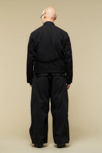 Gears for futuristic adults. J106 features an asymmetric multi-position convertible collar, which can be opened and closed, together with the center front zip, with a single one-handed motion. That same motion can hide or reveal the interior pocket array, the minimalism of which, like the detached entry side pockets, belies maximalist storage capacity. A blend of fluid, sophisticated lines with purposeful, proven solutions, J106 is the embodiment of understated overengineering. The remarkable properties of schoeller® 3XDRY® Dryskin™ fabric make J106 almost comically robust, as well as dynamic, and effortless. [ Shown in size: M. Fits: STRAIGHT ] Fabric technology schoeller® 3XDRY® DRYSKIN™ (205 g/sm) _(91% Polyamide, 9% Elastane) _Fabric made in Switzerland schoeller® 3XDRY® DRYSKIN™ (205 g/m²) _(91% Polyamid, 9% Elasthan) _Hergestellt in der Schweiz Sizing Size XS S M L XL 1/2 Chest 55 58 61 64 67 Length 59 61 65 68 71 Shoulders 16 16.5 17 17.5 18 Sleeves 61 63 65 67 69 All measurements in centimeters. Weight: 729g (size M, color Black) Subsystems AuxZipǽ ( F ) Includes JacketSlingǽ [ Removable ] Pockets: 4 _External: 2 _Internal: 2 Interface with All ACRONYM AuxZipǽ ( M ) units Actual product may differ from images. Price including VAT and excluding shipping costs.