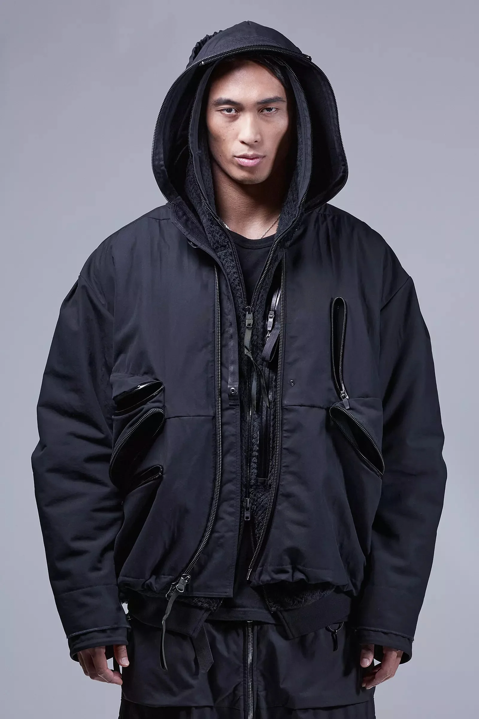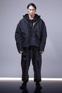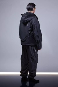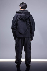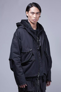 A new form emerges. Sculptural personal architecture driven by materials, design, and motion. We tried to learn everything, then tried to forget it, then made this jacket. The dialogue between old and new, stability and progress, rules and exceptions; the cycle of (r)evolution. Bilateral becomes lateral yielding the largest possible storage spaces. All pockets are TensionZip. Seam treatment variations are throughout. The double overlap zip hood is reformed for both poetry and performance. The cuff is rethought. The JacketSling is rematerialized. The silhouette is reshaped. The action satisfaction remains. The ACRONYM exclusive High Density Double Layer Weave cotton achieves a new synthesis of protection and elegance. Similar in feel, yet superior in function, to traditional moleskin; it does all this without the use of artificial fibres nor chemical adhesion agents (no bonding, no glue). [ Shown in size: M. Fits: WIDE ] Fabric technology STOTZ® ETAPROOF™ DOUBLE LAYER WEAVE COTTON (100% CO) Long staple, combed Windproof, water repellent, breathable Fabric made in Switzerland Sizing Size XS S M L XL 1/2 Chest 61 64 67 70 73 Length 67 70 73 76 79 Shoulders 18.5 19 19.5 20 20.5 Sleeves 64 66 68 70 72 All measurements in centimeters. Weight: 1370g (size M, including removable parts) Systems ACRONYM SOUNDǽ (PAT.) Subsystems JacketSlingǽ SpeedLockǽ TensionZipǽ Pockets: 5 _External: 5 _Internal: 0 Includes ForceLockǽ [ Removable ] Logo tape [ Removable ] JacketSlingǽ [ Removable ] Actual product may differ from images.