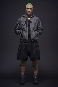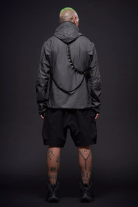 Speed freak. J118-WS weighs in at an almost imperceptible 170g (not including removable parts). Enabler of this feat is the exceptional GORE WINDSTOPPER® membrane by Gore-Tex Labs: windproof, water repellent, highly breathable, compressible, and ultralight to degrees previously impossible. J118 packs into its own stow pocket which can be slotted to TEC SYS webbing, docked via carabiner, or slung via Jacketslingæ. Sleeve anchor cuffs and the storm hood keep you protected at speed. Jacketslingǽ with spike tape and Storm Hood with full coverage facemask push J118’s lightness and immateriality into the visceral. [ Shown in size: M. Fits: PROFILE ] Fabric technology GORE WINDSTOPPER® Products by Gore-Tex Labs 2L UNLINED (53% PA, 47% ePTFE) 12 denier yarns Ultra light weight shell Packable Sizing Size XS S M L XL 1/2 Chest 46.5 49.5 52.5 55.5 58.5 Length 63.5 66.5 69.5 72.5 75.5 Shoulders 13 13.5 14 14.5 15 Sleeves 74 76 78 80 82 All measurements are in centimeters. Weight: 327.5g (size M, color: Black, including removable parts) Systems ACRONYM SOUNDǽ (PAT.) Subsystems JacketSlingǽ Pockets: 3 _External: 2 _Internal: 1 Includes ForceLockǽ [ Removable ] Logo tape [ Removable ] JacketSlingǽ [ Removable ] Spike tape [ Removable ] Carabiner [ Removable ] Slotted Loops: 2 [ Removable ] Actual product may differ from images.