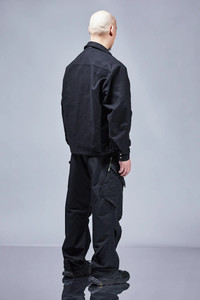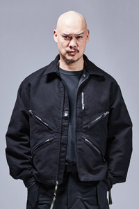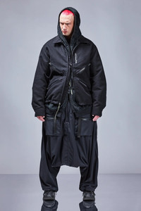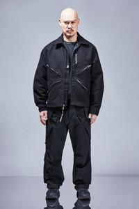 Badassery is built upon the foundation of reliability. So too this solid utilitarian nonshell jacket. Like a tool it is devoid of ornament. Its weft velvet moleskin fabric is quiet, elegant even, made in Germany, and most of all, tough. A sculptural skin that moulds to your body over time. Its features are equally straightforward. 4 teardrop TensionZipǽ pockets with standing pocket bags: 2 lower, 2 holster. 1 lipstick pocket. Double snap cuffs. Speedlockǽ shock cord hem for air compartmentalization and silhouette change. And a breakaway type EscapeZipǽ and Jacketslingǽ for when the gloves, and jacket, inevitably come off. Nonshell is a new category type featuring resilient fabrics and constructions without chemically constituted bonding or membranes. [ Shown in size: M. Fits: WIDE ] Fabric technology MOLESKIN _(HV Weft Velvet) _(100% Cotton) _Fabric made in Germany MOLESKIN _(HV Schuss-Samt) _(100% Baumwolle) _Stoff in Deutschland hergestellt Sizing Size XS S M L XL 1/2 Chest 51.5 54.5 57.5 60.5 63.5 Length 67 70 73 76 79 Shoulders 19 19.5 20 20.5 21 Sleeves 64 66 68 70 72 All measurements in centimeters. Weight: 1040g (size M, color Black) Subsystems ForceLockǽ JacketSlingǽ SpeedLockǽ EscapeZipǽ TensionZipǽ AuxZipǽ ( F ) Pockets: Total: 5 _External: 5 _Internal: 0 Includes ForceLockǽ [ Removable ] JacketSlingǽ [ Removable ] Logo Tape [ Removable ] Interface with All ACRONYM AuxZipǽ ( M ) units Actual product may differ from images. Price including VAT and excluding shipping costs.
