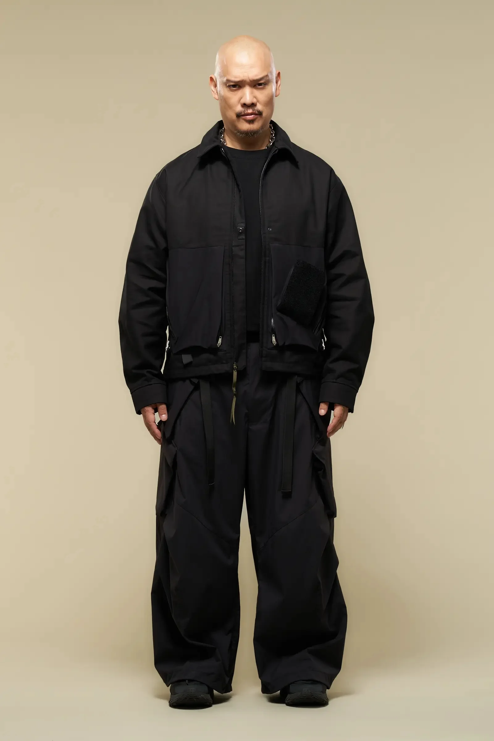 J121A-KI is a variable position storage system disguised as an easy wearing utility jacket. A twin set of large dual-entry mid-level chest pockets serve as the jacket's central storage hub, and feature medial entry TensionZipǽ closures for full access. Chest pocket configuration and placement allows multiple paths to contents; anatomic when worn solo, underneath a separate WP layer, or while hanging from its JacketSlingǽ. An asymmetric peripheral pocket adds literal storage depth to the array, and all pockets, including the internal sleeves and the external webbing loop for further attachments, remain accessible in all donned positions. Separate bilateral WR TensionZipǽ lower pockets complete the storage options. DFMA pattern engineering ensures the jacket remains light, fast, and responsive despite all of the above. The beautiful and hardwearing 6 shaft warp sateen fabric is built to military specifications and made in Germany. Nonshell is a new category type featuring resilient fabrics and constructions without chemically constituted bonding or membranes. [ Shown in size: M. Fits: WIDE ] Fabric technology SANFORIZED 6-SHAFT WARP SATEEN _(100% Cotton) _Fabric made in Germany _Military Specification Chest pockets in 100% Polyamide [ Recycled ] 6-BINDIGER KETTATLAS, GEKRUMPFT _(100% Baumwolle) _Stoff in Deutschland hergestellt _Militarische Spezifikation Brusttaschen in 100% Polyamid [ Recycled ] Sizing Size XS S M L XL 1/2 Chest 58 61 64 67 70 Length 67 70 73 76 79 Shoulders 19 19.5 20 20.5 21 Sleeves 64 66 68 70 72 All measurements in centimeters. Weight: 922 g (size M, color Black) Systems ACRONYM SOUNDǽ (PAT.) Subsystems JacketSlingǽ EscapeZipǽ SpeedLockǽ AuxZipǽ ( F ) TensionZipǽ Pockets: 9 _External: 7 [ Mezzanine: 2 ] _Internal: 2 Includes JacketSlingǽ [ Removable ] Logo spike tape [ Removable ] ForceLockǽ [ Removable ] Interface with All ACRONYM AuxZipǽ ( M ) units Actual product may differ from images. Price including VAT and excluding shipping costs.