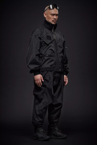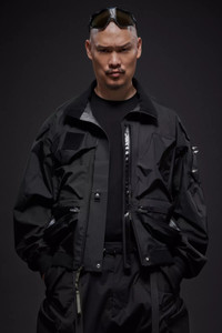 ‘My new jacket can hold the bridge.’ Demi-oversized blouson bomber with asymmetric Interopsǽ compatible pocket layout. Gore-Tex® 3L shell fabric and dimensional flex cuffs. Modular spikes on left shoulder pocket and Jacketslingǽ. Myriad use-driven technical details you will be discovering for years to come. [ Shown in size: M. Fits: WIDE ] Fabric technology GORE-TEX® PRODUCTS WITH PERFORMANCE TECHNOLOGY 3L TRICOT BACKER (100% PA6) 70 denier yarns GUARANTEED TO KEEP YOU DRY™ Sizing Size XS S M L XL 1/2 Chest 51.5 54.5 57.5 60.5 63.5 Length 62 65 68 71 74 Shoulders 23 23.5 24 24.5 25.5 Sleeves 60.5 62.5 64.5 66.5 68.5 All measurements are in centimeters. Weight: 654g (size M, color: Black, including removable parts) Systems ACRONYM INTEROPSǽ (PAT.) Subsystems JacketSlingǽ EscapeZipǽ SpeedLockǽ TensionZipǽ AuxZipǽ ( F ) Pockets: 10 _External: 8 _Internal: 2 Includes JacketSlingǽ [ Removable ] Spike tape [ Removable ] Interface with All ACRONYM INTEROPSǽ bags All ACRONYM AuxZipǽ ( M ) units Actual product may differ from images.